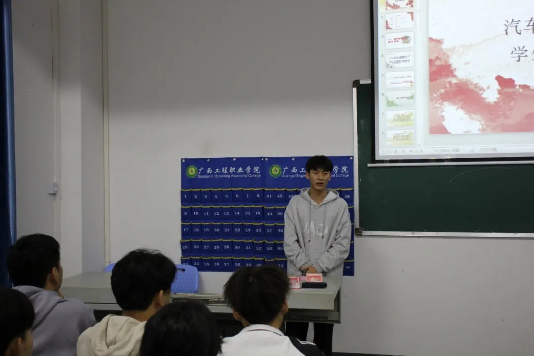 汽車與機(jī)電學(xué)院學(xué)生會(huì)執(zhí)行主席符正豪向大家介紹自己作為班干的心得與經(jīng)歷。