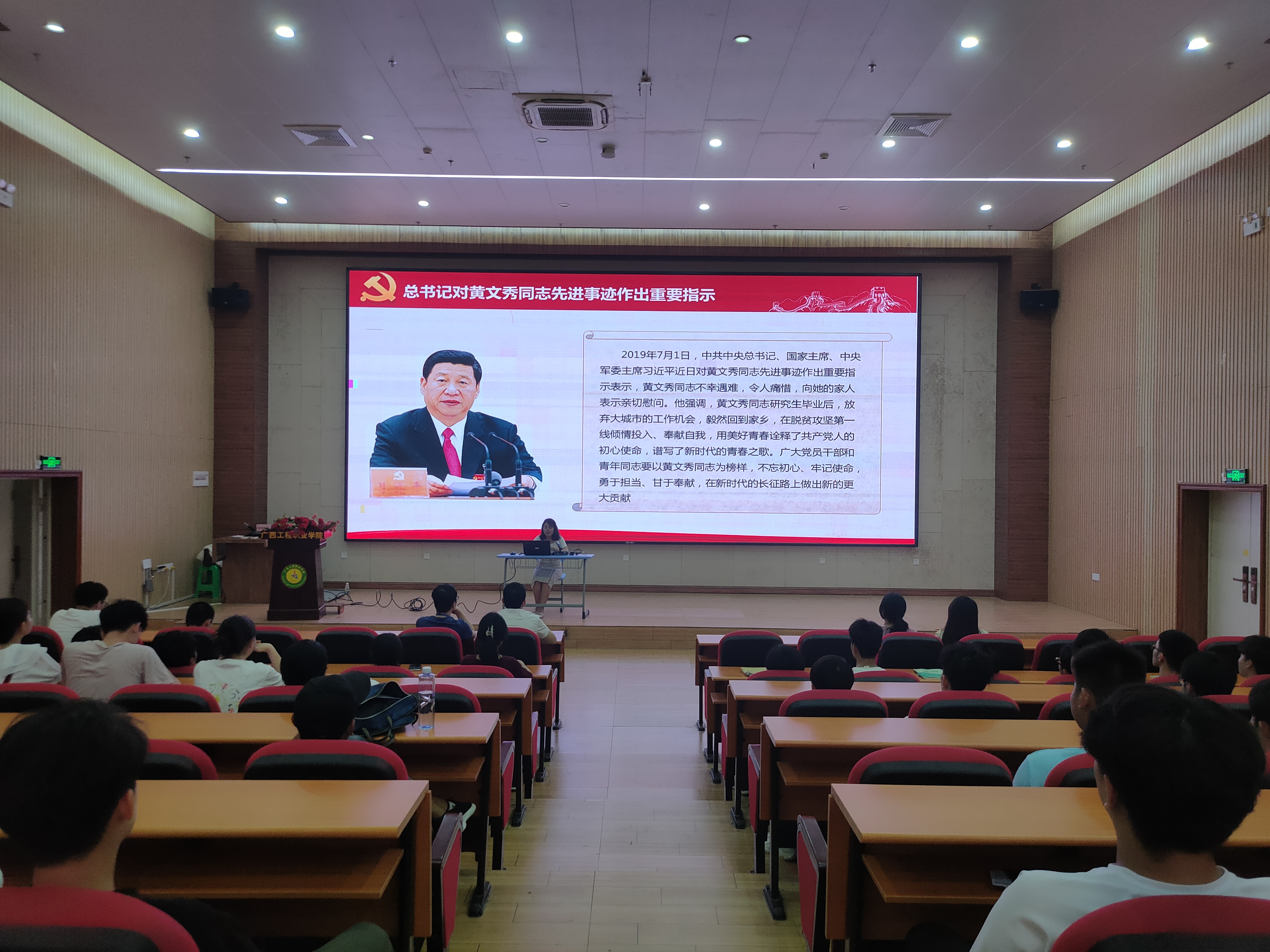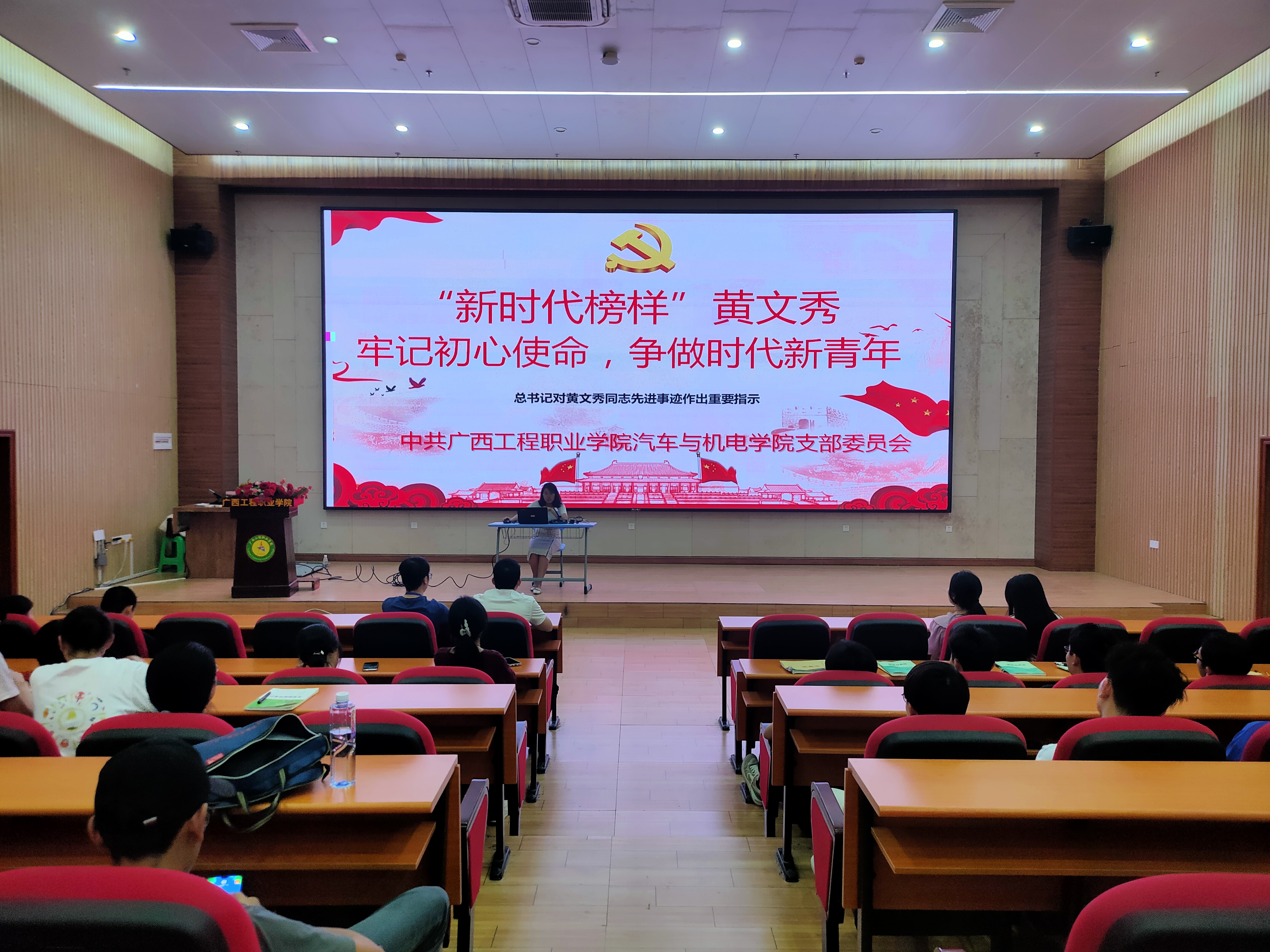 鄧鎮(zhèn)連同志作《“新時(shí)代榜樣”黃文秀先進(jìn)事跡》專題宣講 在黨課學(xué)習(xí)會(huì)上,汽車與機(jī)電學(xué)院黨支部副書記鄧鎮(zhèn)連同志作了《“新時(shí)代榜樣”黃文秀先進(jìn)事跡》專題宣講,她強(qiáng)調(diào)榜樣的力量是無(wú)窮的,廣大黨員和青年要深刻學(xué)習(xí)領(lǐng)會(huì)習(xí)近平總書記對(duì)黃文秀同志先進(jìn)事跡重要指示的精神,時(shí)刻牢記“走得再遠(yuǎn)、走到再光輝的未來(lái),也不能忘記走過的過去,不能忘記為什么出發(fā)”,自覺以黃文秀同志為榜樣,不忘初心、牢記使命,勇于奉獻(xiàn)擔(dān)當(dāng),在新時(shí)代的長(zhǎng)征路上做出新的更大貢獻(xiàn)。