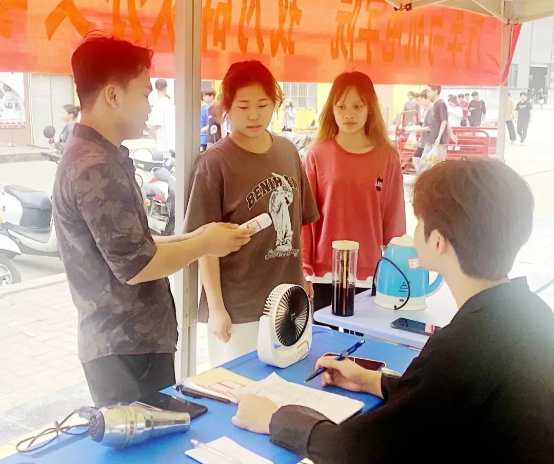 家電維修報名地點在綜合食堂旁邊的文化長廊。經(jīng)過前期宣傳,3月21日到25日期間,汽車與機電學(xué)院收到師生拿來維修的臺燈、吹風(fēng)機、插電板、熱水壺、小型電風(fēng)扇等多個家用電器。汽車與機電學(xué)院的同學(xué)們在報名點指導(dǎo)需要維修家電的師生填寫維修信息,貼好標(biāo)簽,同時還義務(wù)宣傳家電的規(guī)范使用知識,分享小家電維修和使用技巧問題。最后把收集到的需要維修的家電集中到學(xué)院維修實訓(xùn)室統(tǒng)一維修。