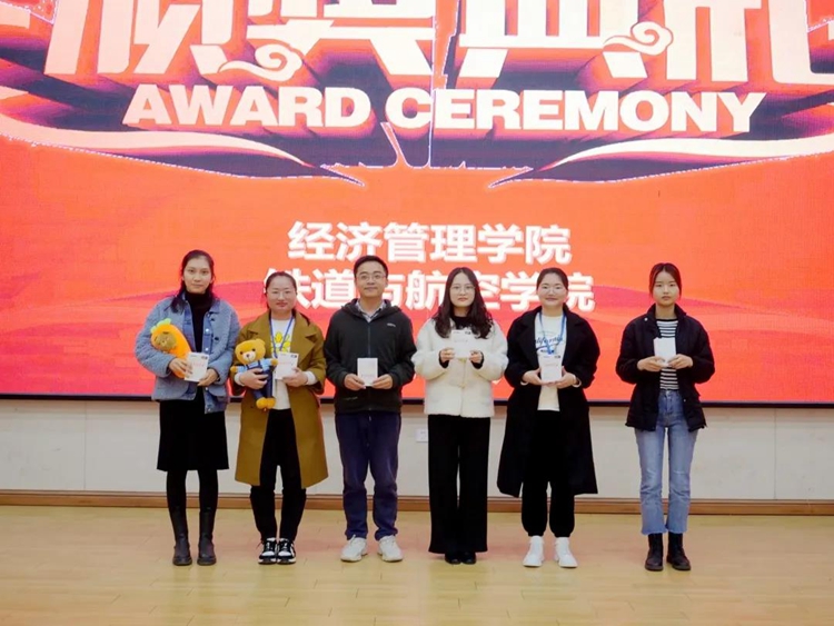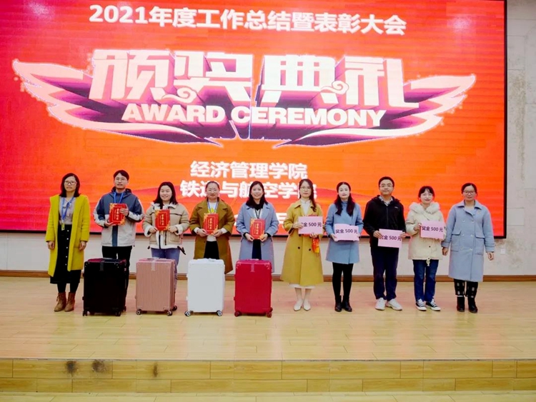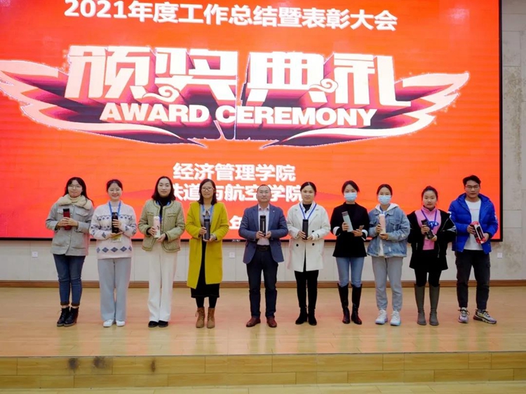 1月5日下午,鐵道與航空學(xué)院與經(jīng)濟(jì)管理學(xué)院在圖文信息大樓一樓報告廳召開2021年度工作總結(jié)暨表彰大會,全面總結(jié)學(xué)院年度工作,表彰先進(jìn),部署下學(xué)期工作任務(wù),推動學(xué)院工作上新臺階。校黨委委員、副校長彭高彬,校長助理、經(jīng)濟(jì)管理學(xué)院黨支部書記、副院長覃清香及鐵道與航空學(xué)院黨支部書記、副院長覃鳳姣出席會議,學(xué)院全體教師參加會議。會議由董文凱老師主持。會上還穿插了幸運抽獎環(huán)節(jié),讓老師們提前感受熱鬧的年味。