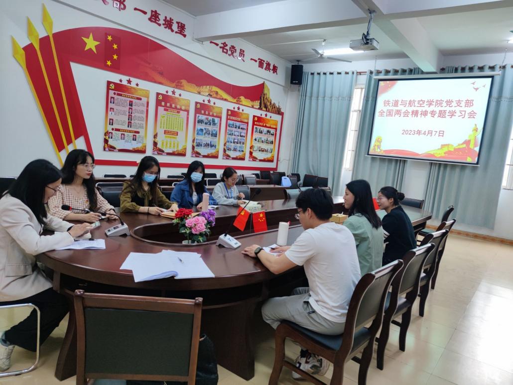 會(huì)議開始,鐵道與航空學(xué)院黨支部書記覃鳳姣帶領(lǐng)全體師生黨員學(xué)習(xí)全國兩會(huì)精神并對新一屆國家機(jī)構(gòu)和全國政協(xié)領(lǐng)導(dǎo)人員進(jìn)行簡單介紹。與會(huì)人員認(rèn)真學(xué)習(xí),并積極參與討論。