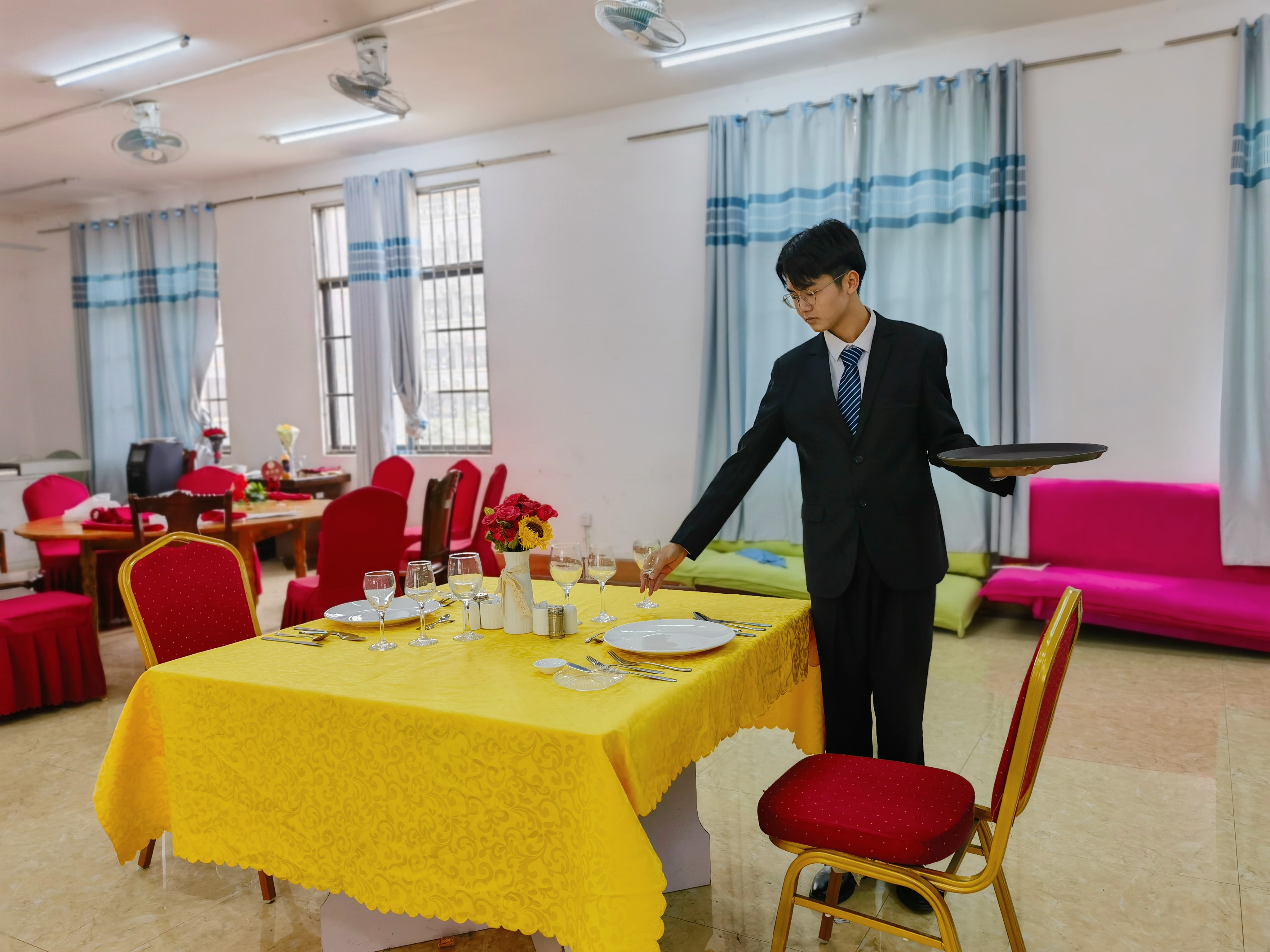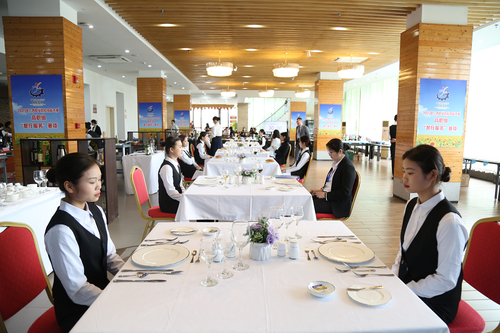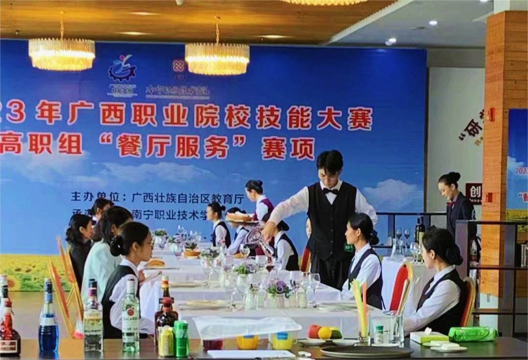 為充分激發(fā)學(xué)生的學(xué)習(xí)興趣和創(chuàng)新能力,提高學(xué)生自主學(xué)習(xí)和解決問題的能力,從而提升學(xué)生自身就業(yè)競爭力,3月16-19日,我院結(jié)合專業(yè)設(shè)置情況積極組織學(xué)生參加廣西職業(yè)院校(高職組)《餐廳服務(wù)》技能比賽。我院22級高鐵1班陳華富、22級城軌3班鐘榮浩兩位同學(xué)參加此次比賽,盧桂玉、謝宏玲兩位老師指導(dǎo)比賽。