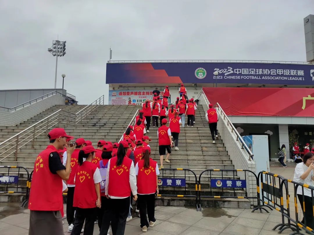 比賽當天,各地球迷紛至沓來,人群中有許多“紅馬甲”的身影,遍布在平果體育場及周邊區(qū)域,為觀眾球迷提供貼心周到的志愿服務,為賽事貢獻青春力量。