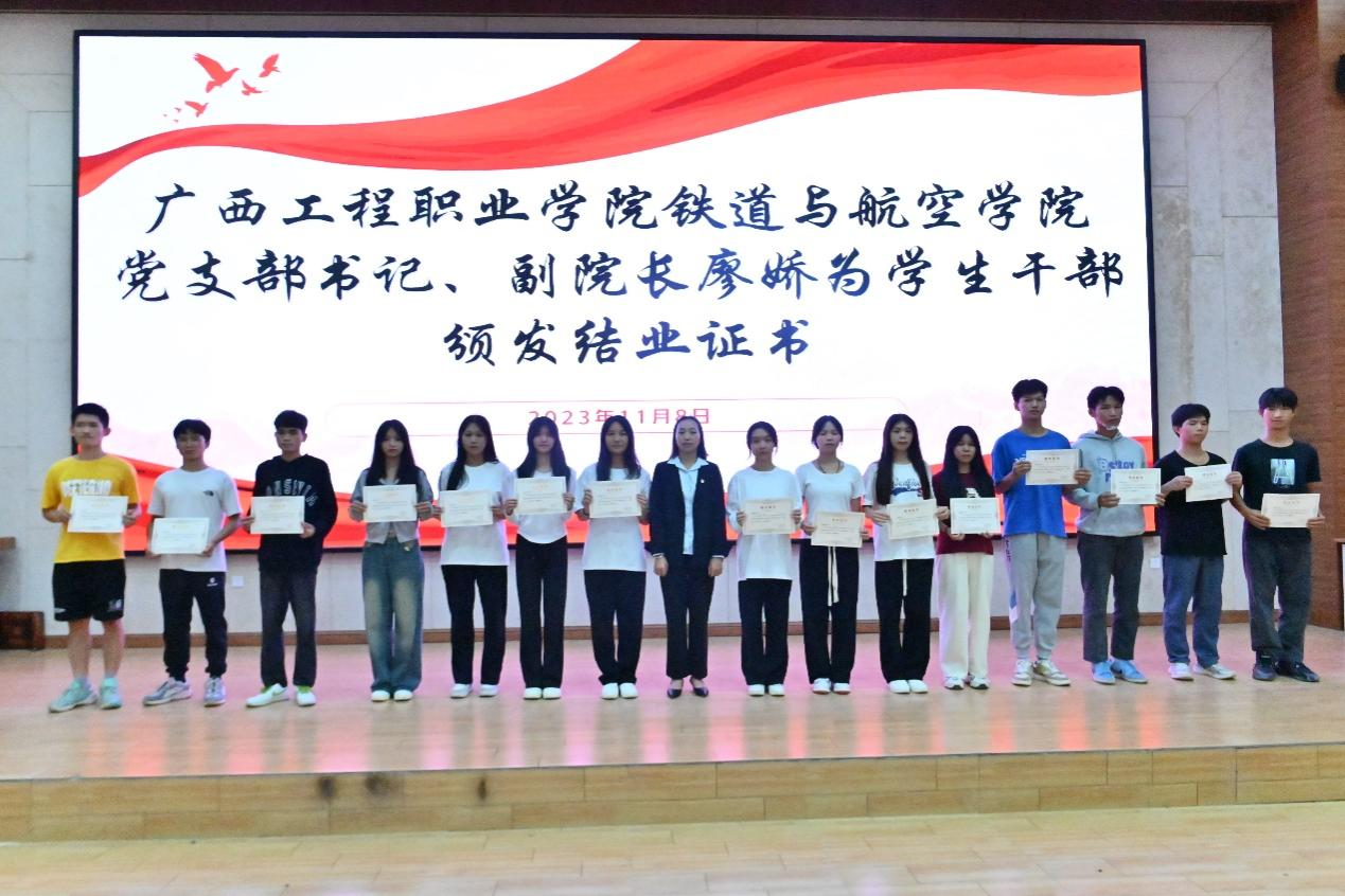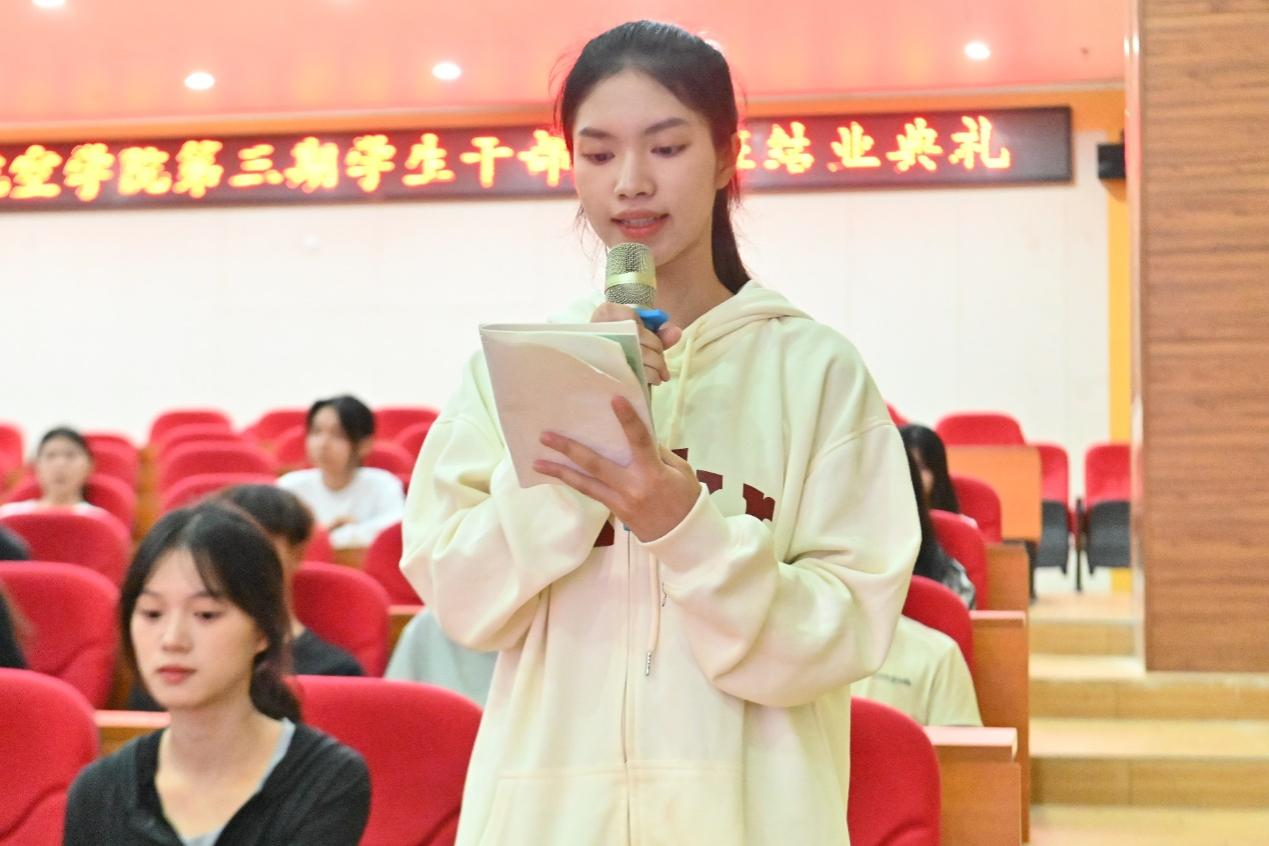 黨支部書記、副院長(zhǎng)廖嬌為學(xué)生干部頒發(fā)結(jié)業(yè)證書