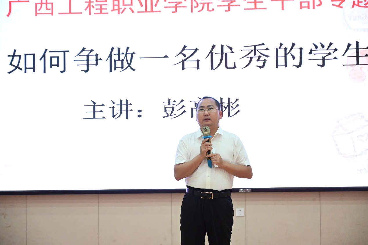 紀(jì)委書記、副校長(zhǎng)彭高彬副教授作題為《如何做一名優(yōu)秀的學(xué)生干部》的專題培訓(xùn)