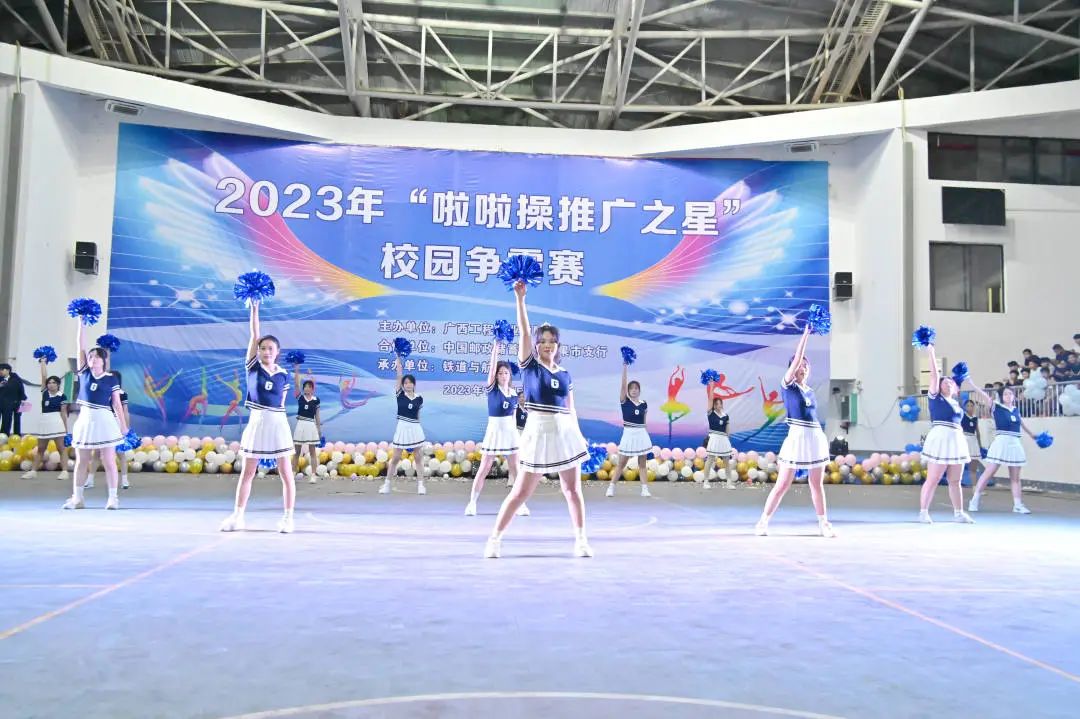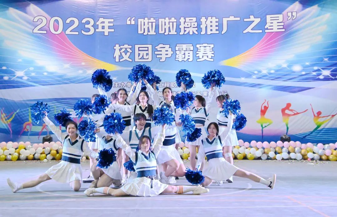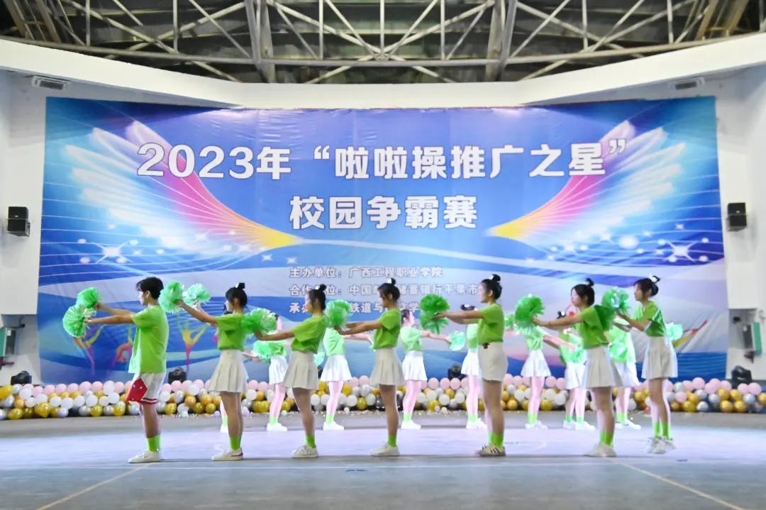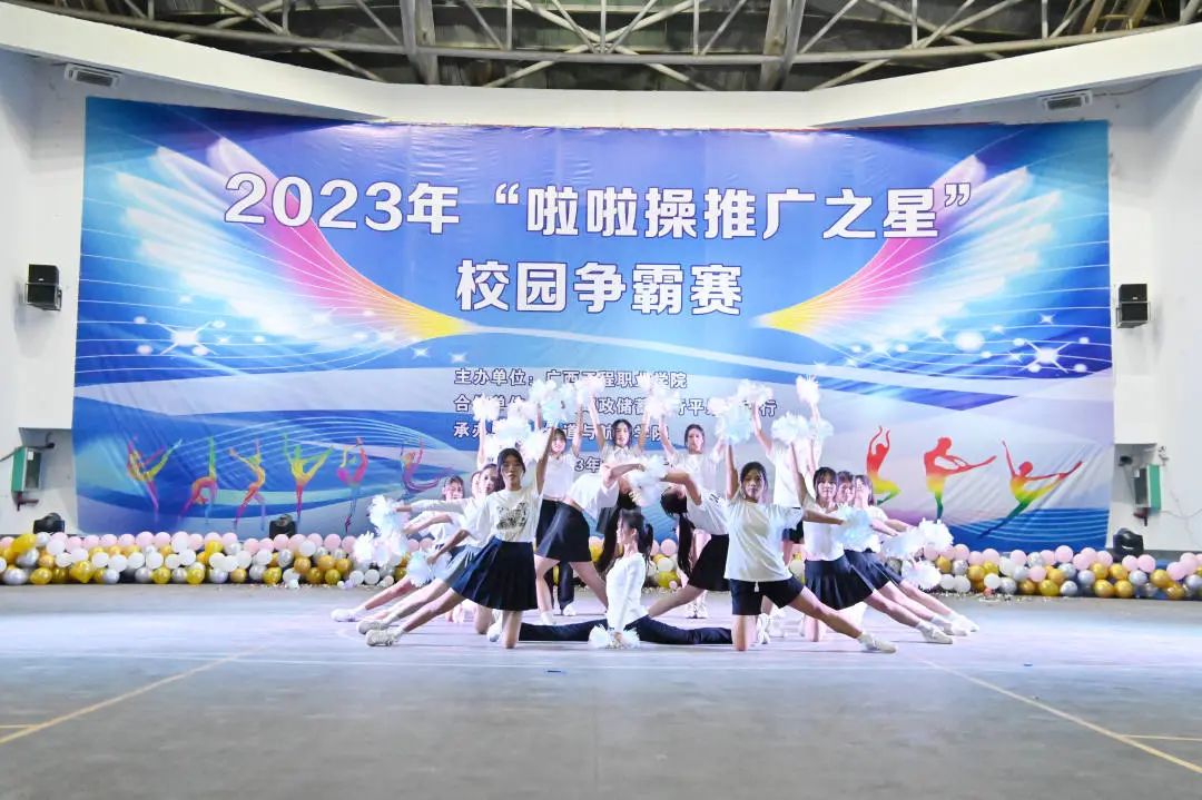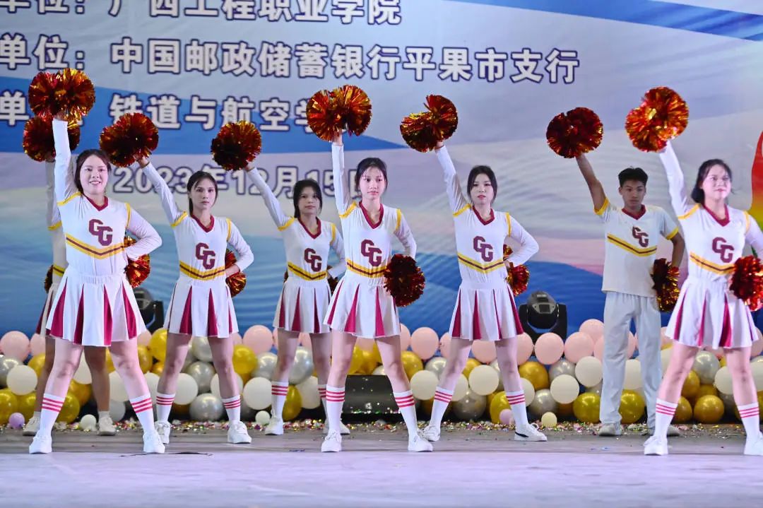 為豐富校園文化生活,展現(xiàn)學(xué)生蓬勃向上的精神風(fēng)貌和青春活力,12月15日,2023年“啦啦操推廣之星”校園爭(zhēng)霸賽在學(xué)校體育館舉行,比賽由廣西工程職業(yè)學(xué)院主辦,中國(guó)郵政儲(chǔ)蓄銀行平果市支行合作共辦,鐵道與航空學(xué)院承辦。學(xué)校紀(jì)委書記、副校長(zhǎng)彭高彬,中國(guó)郵政儲(chǔ)蓄銀行平果市支行行長(zhǎng)羅顯勇,中國(guó)銀行平果市支行行長(zhǎng)馬忺翊,廣西平果順全隆建材有限公司第二分公司總經(jīng)理李宇,鐵道與航空學(xué)院黨支部書記、副院長(zhǎng)廖嬌,鐵道與航空學(xué)院黨支部副書記宋蓉、辦公室主任黃晶晶、分團(tuán)委書記謝小玲,中國(guó)郵政儲(chǔ)蓄銀行平果市支行客戶經(jīng)理呂玲、潘文靜等出席比賽現(xiàn)場(chǎng),學(xué)院全體師生到場(chǎng)觀看比賽。本次比賽由謝錫潔、盧桂玉、顧春盈、黃家歡、蔡富榮五位老師擔(dān)任評(píng)委。共有10支隊(duì)伍參加比賽。