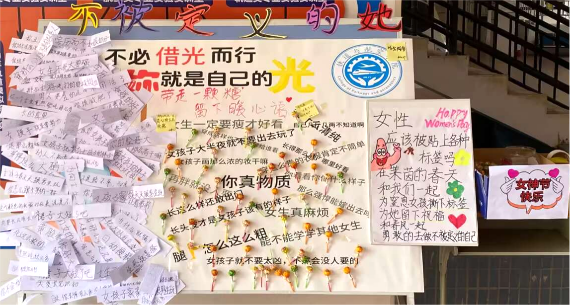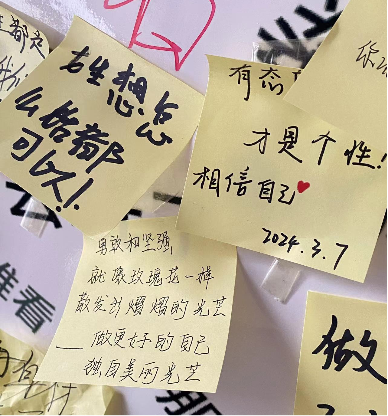 此次活動的開展,進一步豐富了同學(xué)們對“三八婦女節(jié)”的認識,激勵女生擺脫外界對自己貼上的標簽,勇敢地去做自己,勇敢追求夢想。