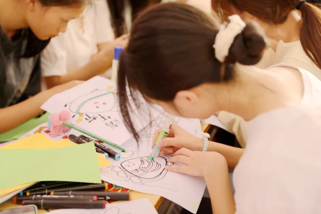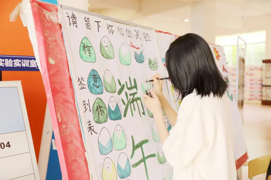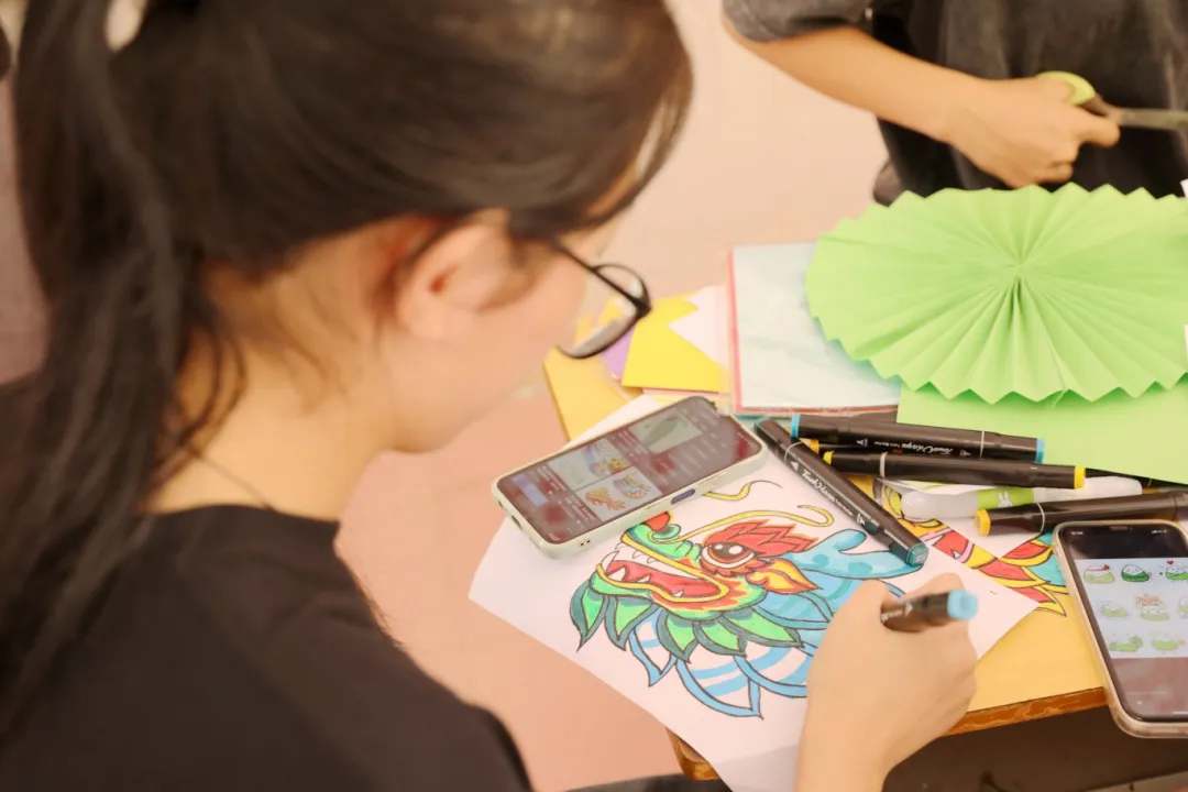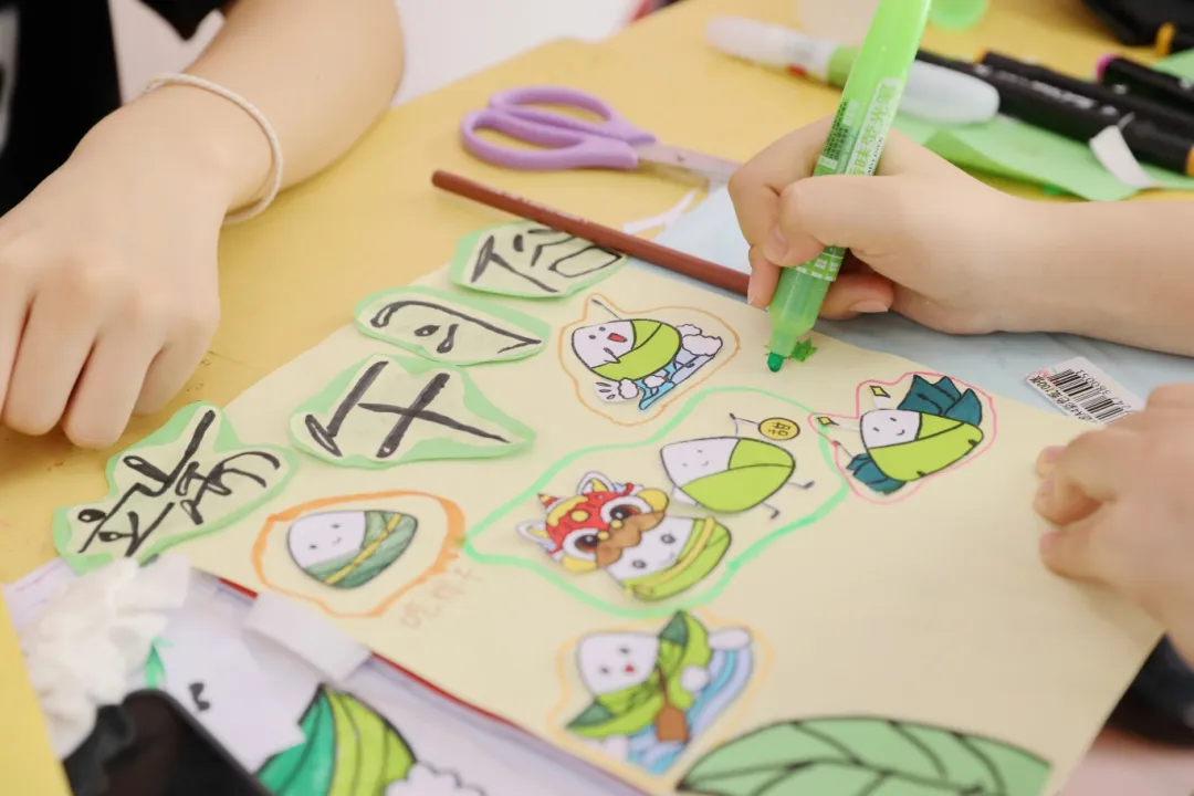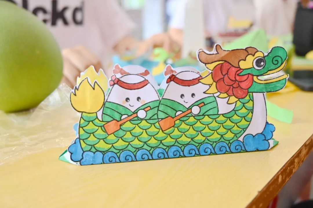 在活動現(xiàn)場中,同學們以端午為主題,使用剪刀、彩紙、膠棒、畫筆等工具,通過折紙、剪紙、畫畫的方式制作出具備端午特色的手工藝品。