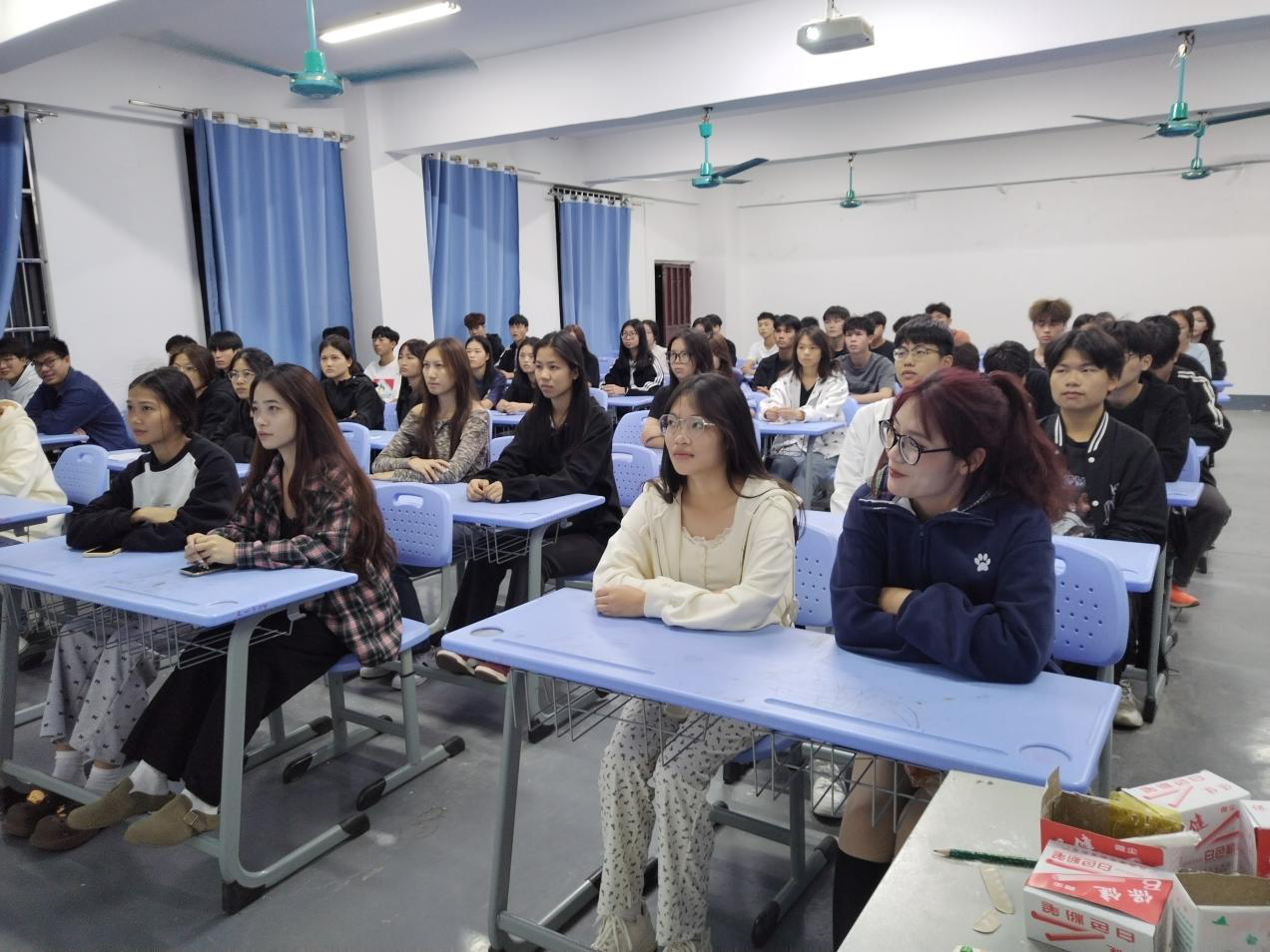 2024級(jí)高速鐵路客運(yùn)服務(wù)專業(yè)的同學(xué)在認(rèn)真聽宣講