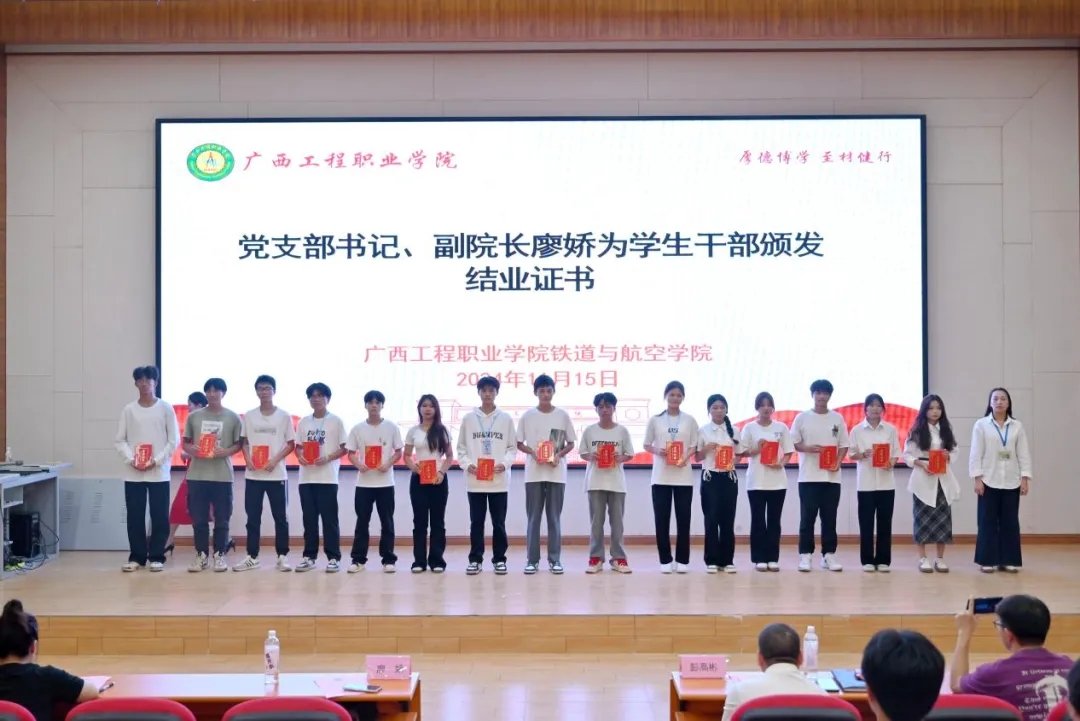 鐵道與航空學院第四期學生干部培訓班結(jié)業(yè)典禮于2024年11月15日在圖文信息大樓五樓學術(shù)報告廳舉行,學校紀委書記、副校長彭高彬,學院黨支部書記、副院長廖嬌等領(lǐng)導出席結(jié)業(yè)典禮,典禮由譚玉林同學主持。