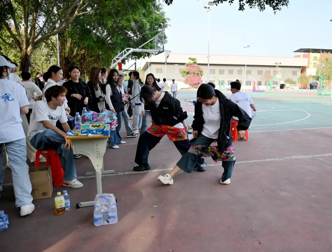 除了激烈的競技比賽,活動現(xiàn)場還設(shè)置了多個趣味小游戲,如套圈活動、蒙眼吃香蕉、徒手穿花褲等。在套圈活動中,師生們站在指定線外,對準目標扔出圈圈,套中物體即為成功。蒙眼吃香蕉則考驗了兩人之間的默契,一人蒙眼,一人指揮,將香蕉喂到同伴口中。徒手穿花褲更是吸引了眾多觀眾的目光,參賽人員在指定區(qū)域快速穿上特制花褲,完成規(guī)定動作,現(xiàn)場笑聲不斷。