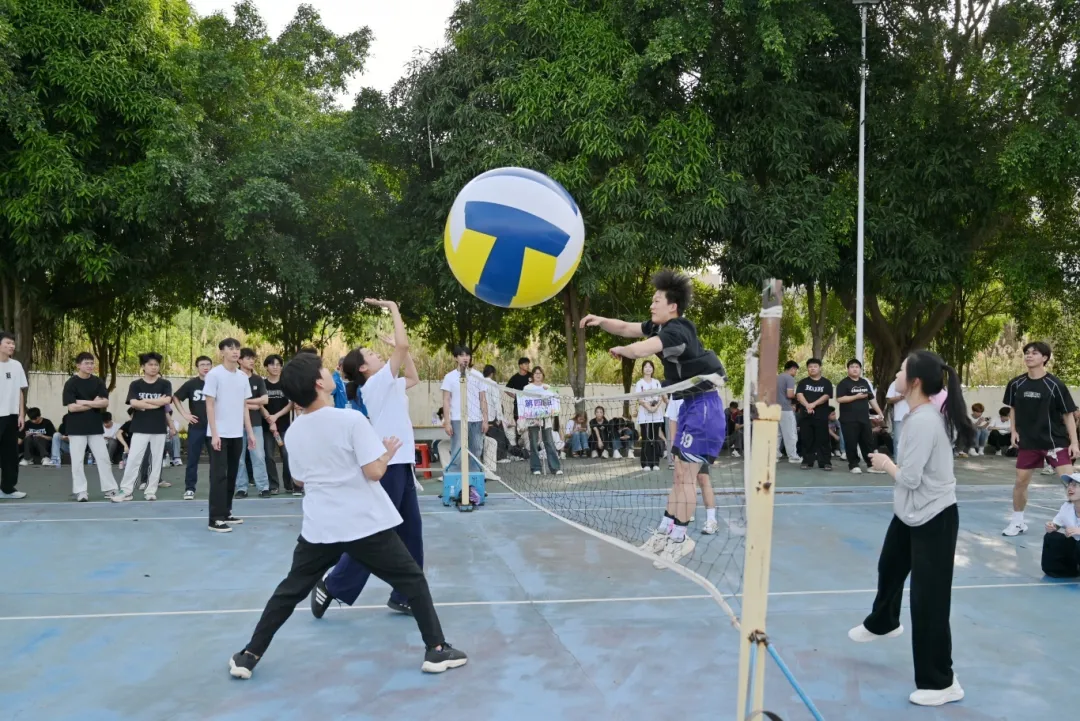 校慶活動以體育競技為亮點,在運動場上激情綻放。巨型排球賽中,同學們精神抖擻,嚴陣以待??矍蛩查g,選手們高高躍起,以雷霆之勢將球扣殺,每一個動作都凝聚著團隊的默契與拼搏,場邊的陣陣喝彩是對他們體育精神的最好褒獎。