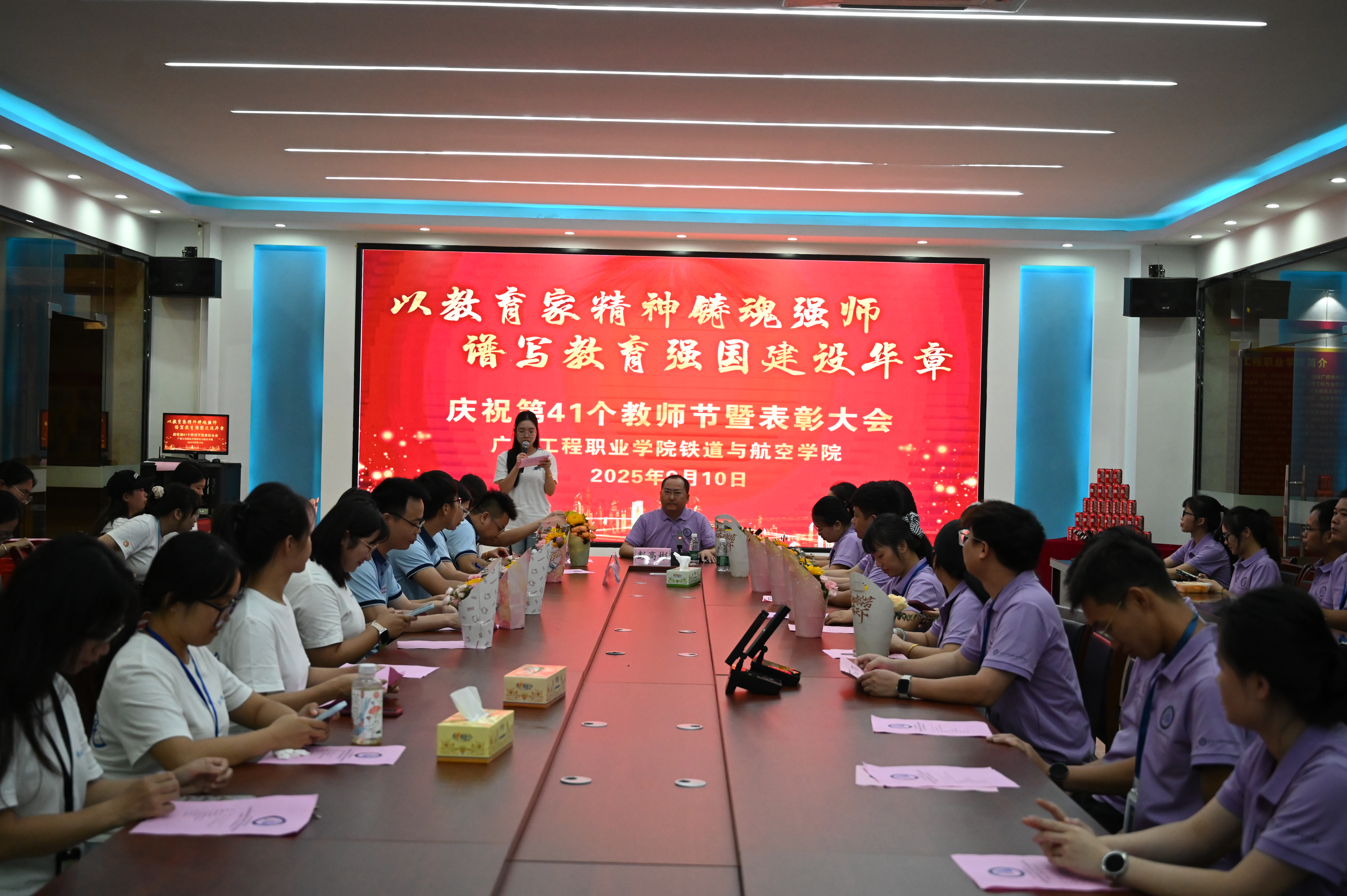 為大力弘揚教育家精神,強化教師“為黨育人、為國育才”的使命擔當,激勵教師提升師德與專業(yè)能力,9月10日,鐵道與航空學院在圖書館大數(shù)據(jù)中心召開慶祝第41個教師節(jié)暨表彰大會,學校紀委書記、副校長彭高彬,鐵道與航空學院黨支部書記、副院長廖嬌參加表彰大會。大會由鐵道與航空學院學生科長黃晶晶主持。