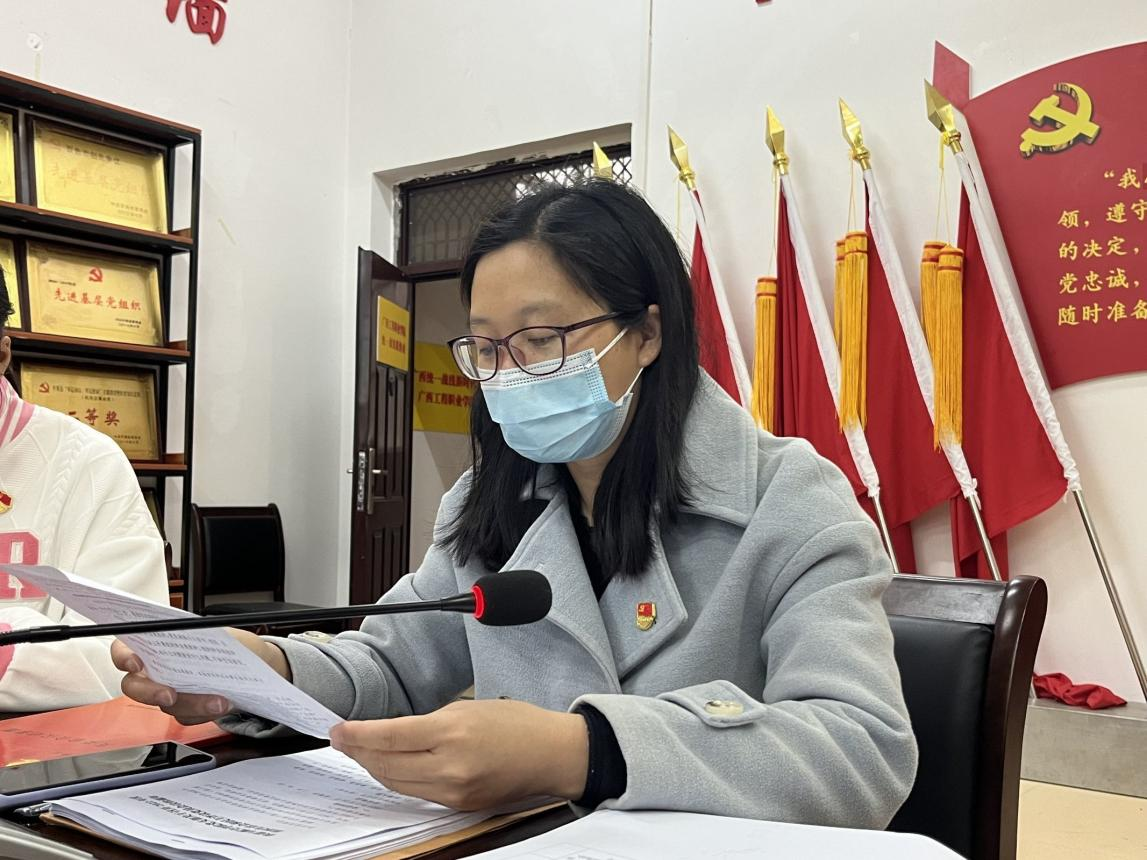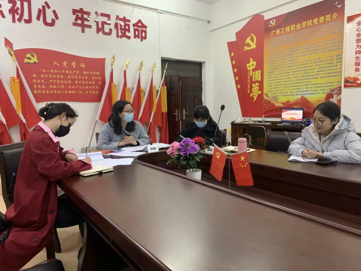 會(huì)上,學(xué)院黨支部書記覃鳳姣帶領(lǐng)支部黨員重點(diǎn)對黨的二十大精神、黨史黨章等內(nèi)容進(jìn)行了學(xué)習(xí),并匯報(bào)了2022年支部工作情況,查擺問題情況以及整改措施,各黨員作出整改承諾,并明確了2023年工作計(jì)劃。隨后,各黨員聯(lián)系自己的思想認(rèn)識(shí)與生活實(shí)際,自我剖析工作生活中存在的優(yōu)缺點(diǎn),依次開展批評和自我批評。并填寫《黨員民主評議黨支部測評表》和《民主評議黨員測評表》。