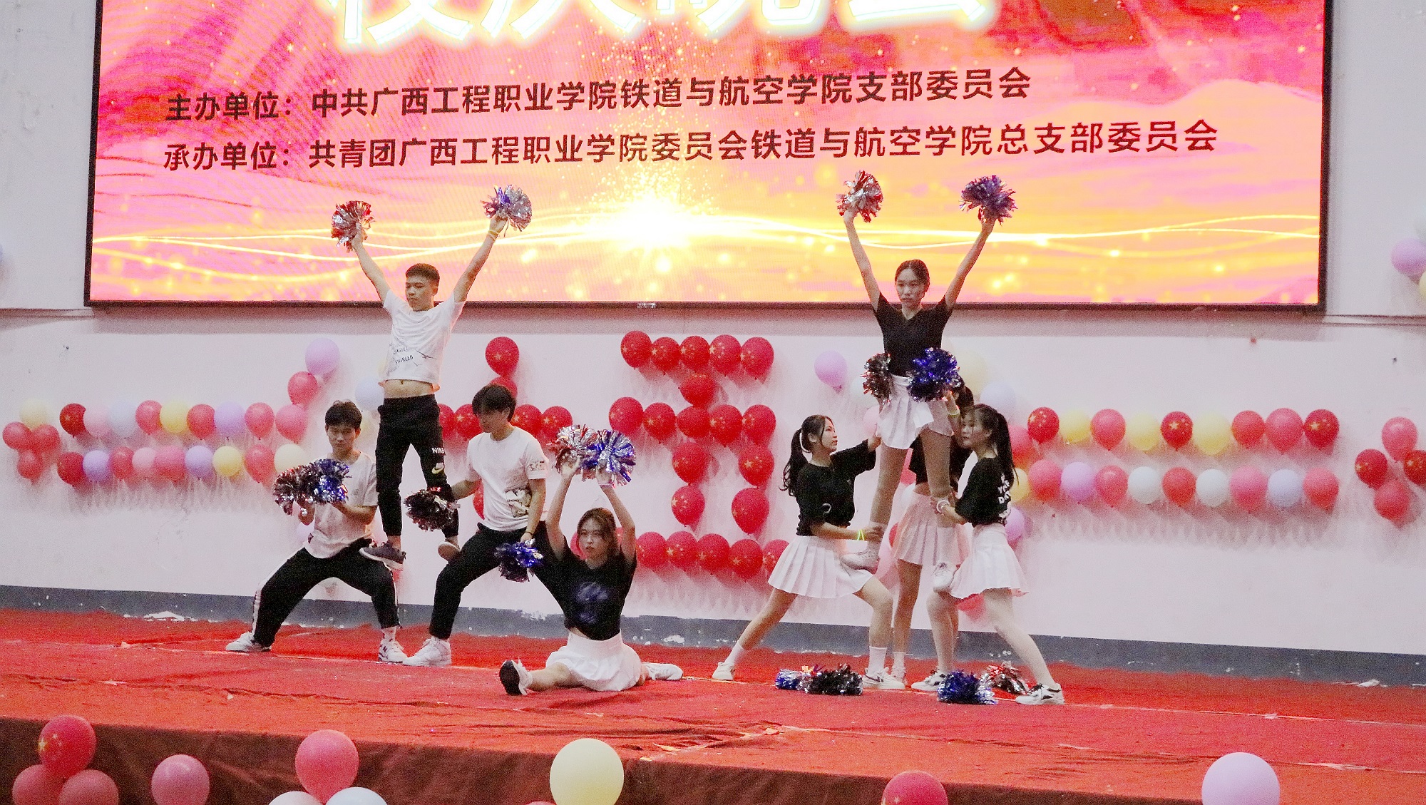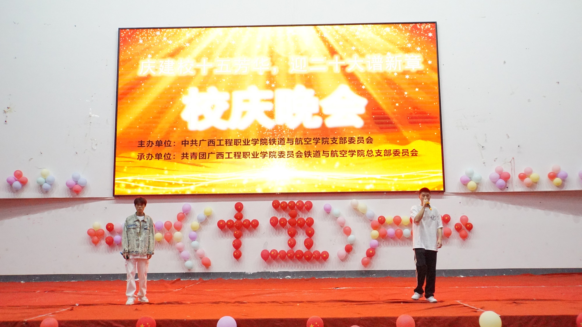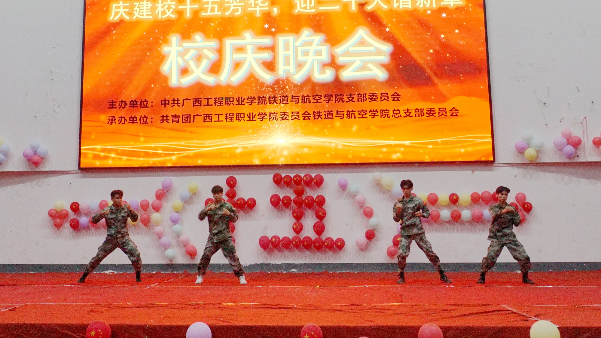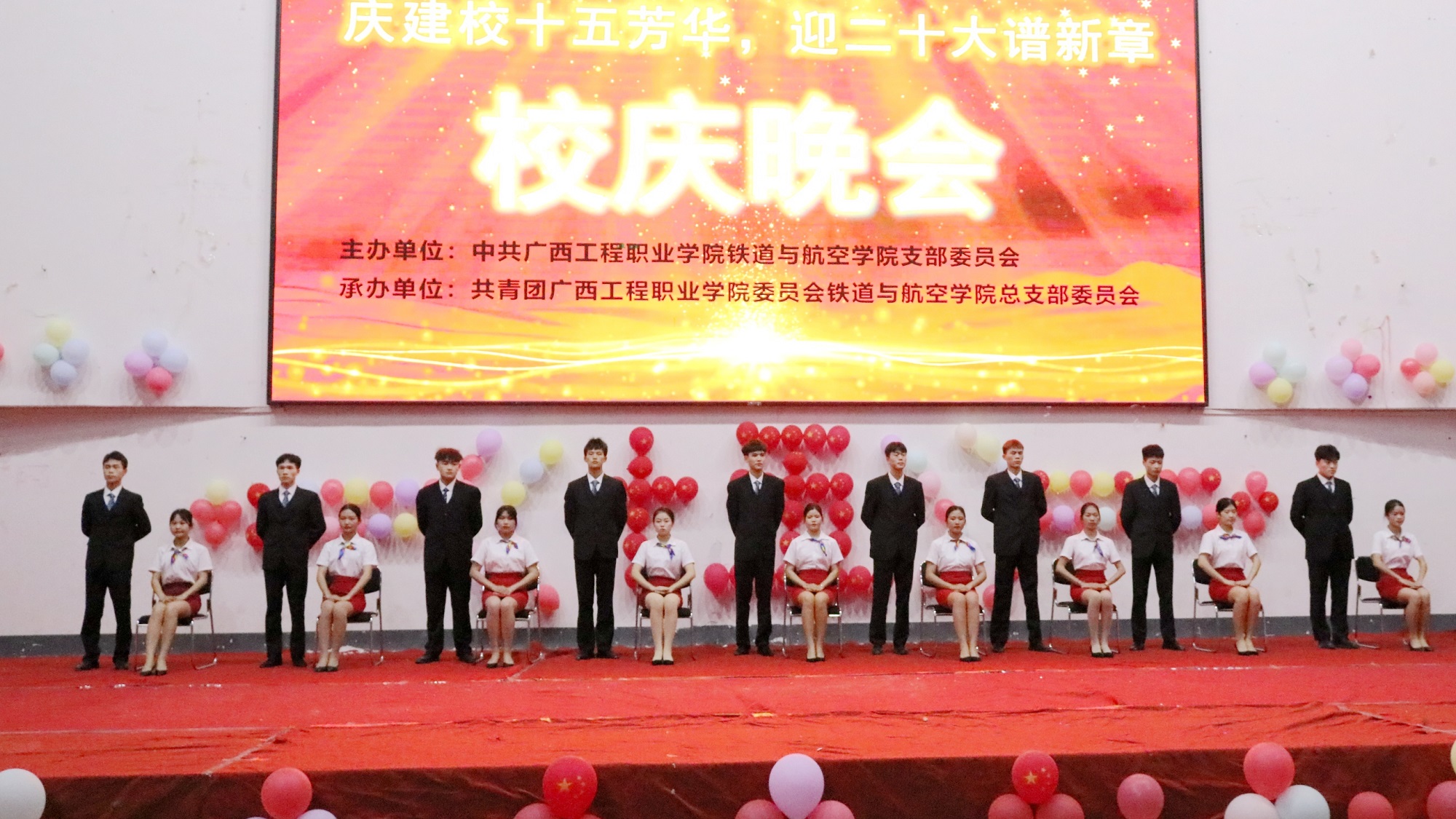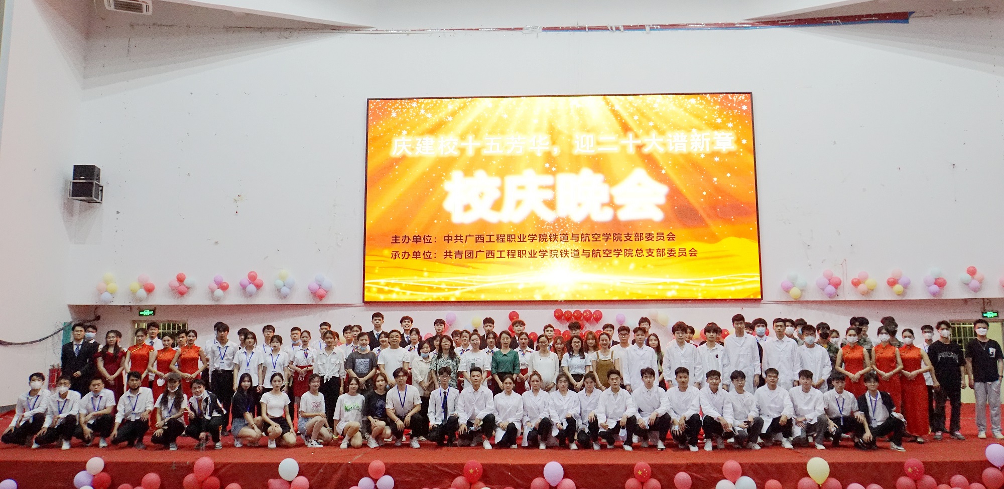 4月14晚,為慶祝學(xué)校建校十五周年,喜迎黨的二十大的勝利召開,我院在學(xué)校體育館成功舉行 “慶建校十五芳華,迎二十大譜新章”文藝晚會(huì),學(xué)校黨委副書記黃秋霞、校團(tuán)委書記梁鳳琴,鐵道與航空學(xué)院黨支部書記、院長(zhǎng)覃鳳姣,各學(xué)院教師代表及我院大部分師生一同觀看晚會(huì)。
