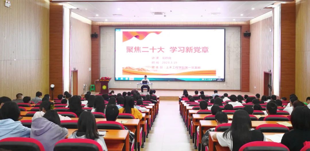 土木工程學(xué)院第一黨支部把學(xué)習(xí)好、宣傳好、貫徹好黨的二十大精神作為當(dāng)前和今后一個(gè)時(shí)期的首要政治任務(wù)。為深入學(xué)習(xí)貫徹黨的二十大精神,深刻領(lǐng)會(huì)新黨章內(nèi)涵和變化,進(jìn)一步提升黨員的黨性修養(yǎng)和作風(fēng)建設(shè),營(yíng)造全院上下學(xué)黨章,強(qiáng)黨性,守黨紀(jì)的良好氛圍。2023年3月19日晚上19:30,土木工程學(xué)院第一黨支部在圖文信息大樓一樓學(xué)術(shù)報(bào)告廳,組織召開(kāi)“聚焦二十大,學(xué)習(xí)新黨章”主題黨課學(xué)習(xí)會(huì),本次黨課由黨支部書(shū)記龍群良同志主講,土木工程學(xué)院第一黨支部全體教師黨員、入黨積極分子、入黨申請(qǐng)人、學(xué)生干部按時(shí)參加了黨課學(xué)習(xí)。