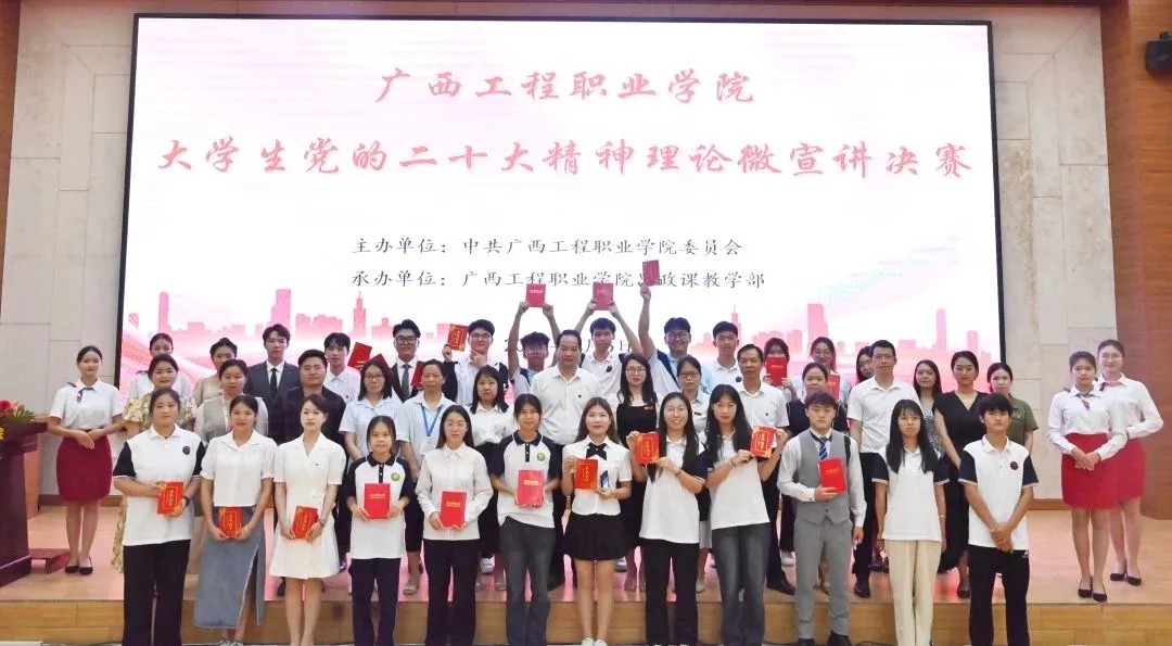 為引導我校大學生學思踐悟黨的二十大精神,推動黨的創(chuàng)新理論走進青年、深入人心。5月6日晚,我校在圖文信息大樓一樓學術(shù)報告廳,舉行廣西工程職業(yè)學院2023年大學生黨的二十大精神理論微宣講比賽決賽。