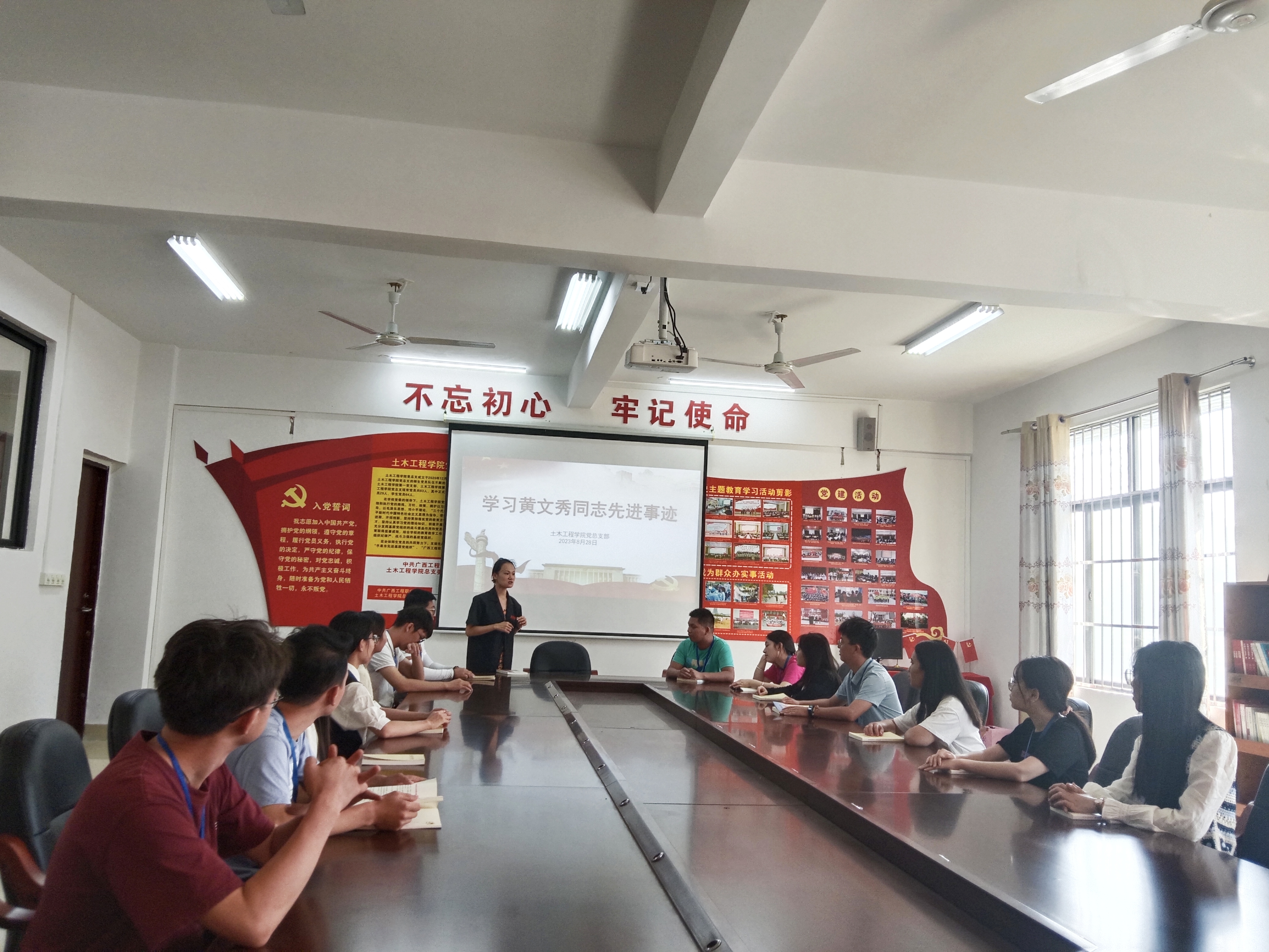 今年是習(xí)近平總書記對(duì)黃文秀同志先進(jìn)事跡作出重要指示的第四年。2023年8月28日在土木工程學(xué)院301黨員活動(dòng)室,土木工程學(xué)院黨總支部組織全體黨員同志開展“學(xué)習(xí)文秀事跡,永葆黨員先鋒”專題學(xué)習(xí)會(huì)。全體黨員一起回顧了文秀同志先進(jìn)事跡,了解黃文秀在學(xué)生時(shí)期以及工作時(shí)期獲得的各類獎(jiǎng)項(xiàng)與榮譽(yù),重溫黃文秀同志在扶貧路上成長、抉擇、奮斗,用青春詮釋共產(chǎn)黨人初心使命的感人事跡。與會(huì)黨員們在會(huì)上暢談了學(xué)習(xí)心得體會(huì)。