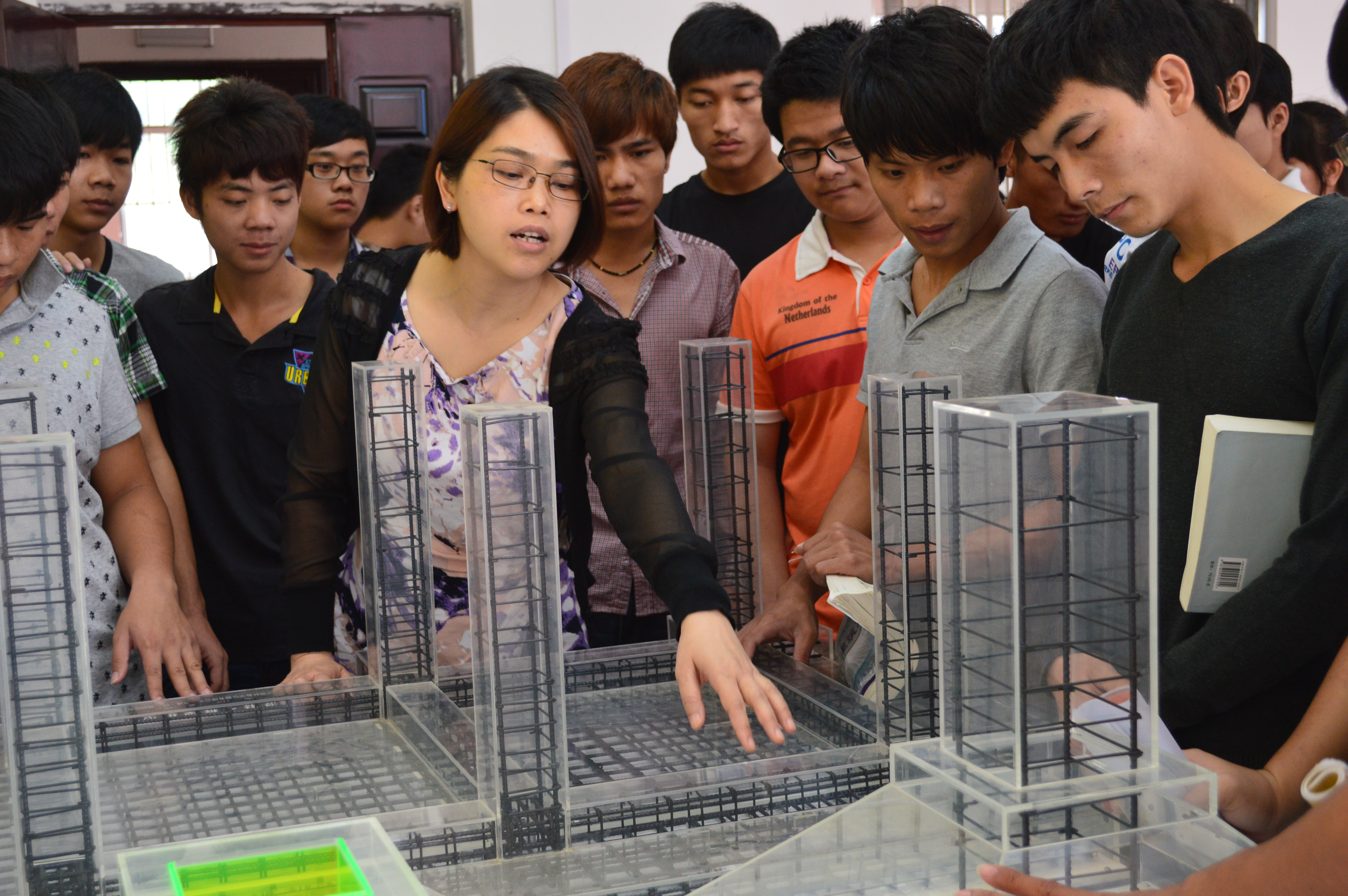 《建筑力學(xué)與結(jié)構(gòu)》教師在給學(xué)生講基礎(chǔ)模型