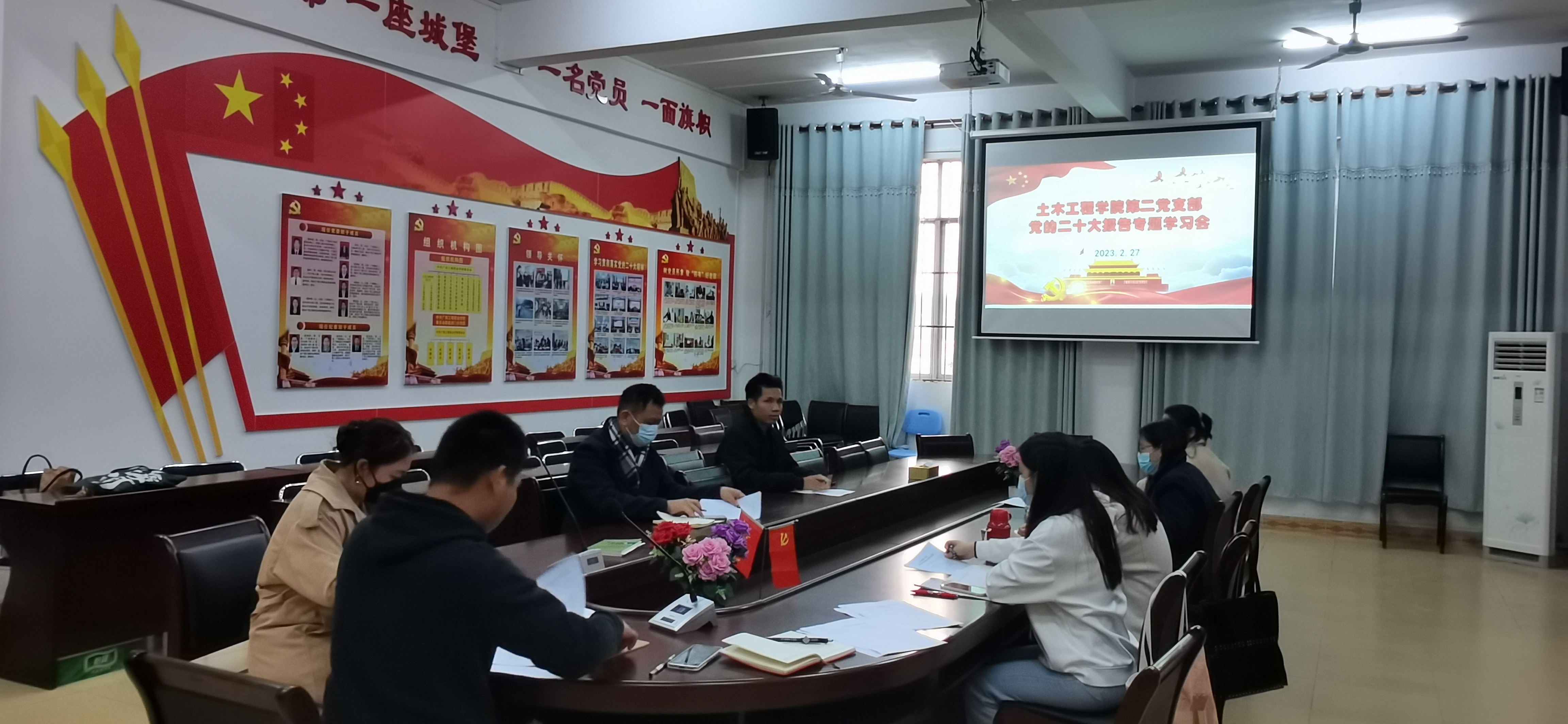 為深入學(xué)習(xí)貫徹黨的二十大精神,堅(jiān)持不懈用習(xí)近平新時(shí)代中國(guó)特色社會(huì)主義思想凝心鑄魂,根據(jù)《中共百色市委教育工作委員會(huì)關(guān)于召開2022年度基層黨組織組織生活會(huì)和開展民主評(píng)議黨員的通知》(百教工委〔2023〕5號(hào))和《中共廣西工程職業(yè)學(xué)院委員會(huì)關(guān)于召開2022年度黨支部組織生活會(huì)和開展民主評(píng)議黨員的通知》(桂工程院黨〔2023〕17號(hào))的文件精神,土木工程學(xué)院第二黨支部于2023年2月27日18:00召集支部教師黨員在圖書館黨員活動(dòng)室開展組織生活會(huì)暨民主評(píng)議黨員會(huì)議。本次會(huì)議由支部書記陳春任主持。