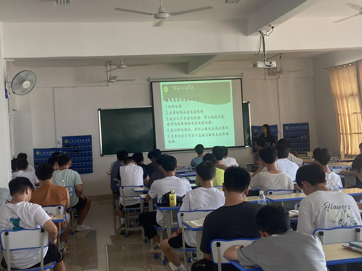 學(xué)生在進(jìn)行實驗實訓(xùn)室安全教育培訓(xùn)現(xiàn)場圖
