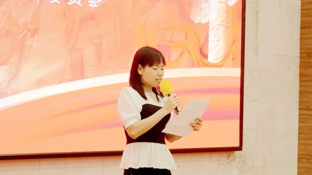 藝術(shù)設(shè)計(jì)學(xué)院黨支部書記覃鳳姣宣讀比賽評分標(biāo)準(zhǔn)
