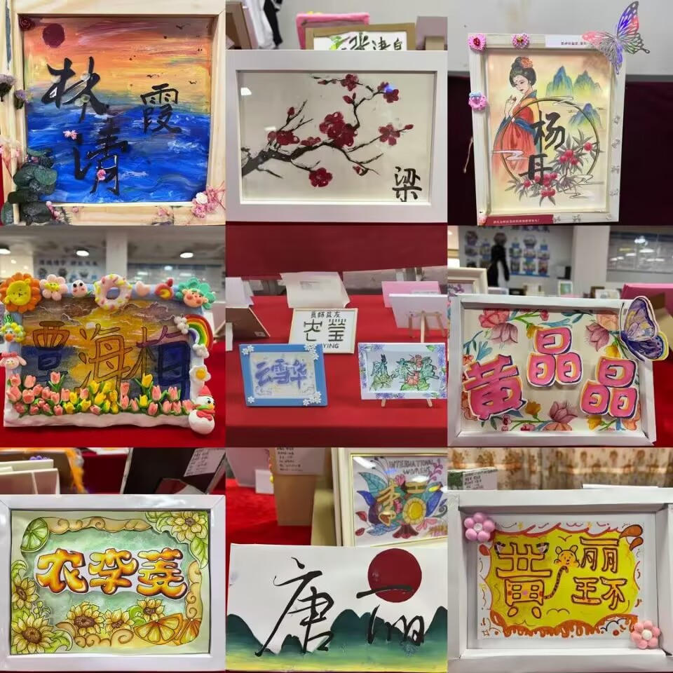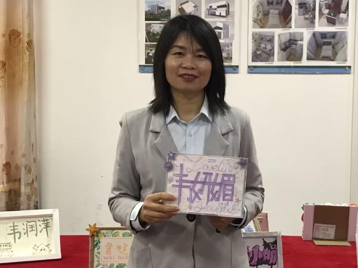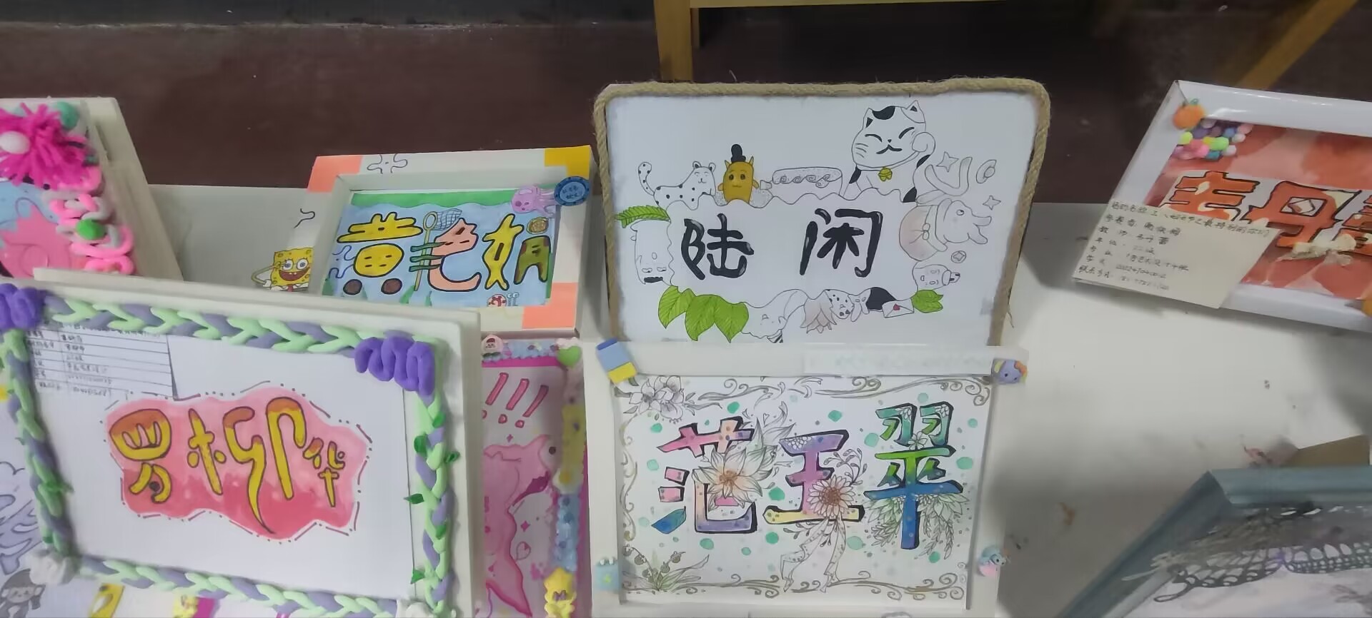 同學(xué)們以女教師名字進(jìn)行藝術(shù)形式上的繪畫創(chuàng)作,以畫抒發(fā)情感,以作品描繪美好,來表達(dá)感恩全校女老師在背后的默默付出。