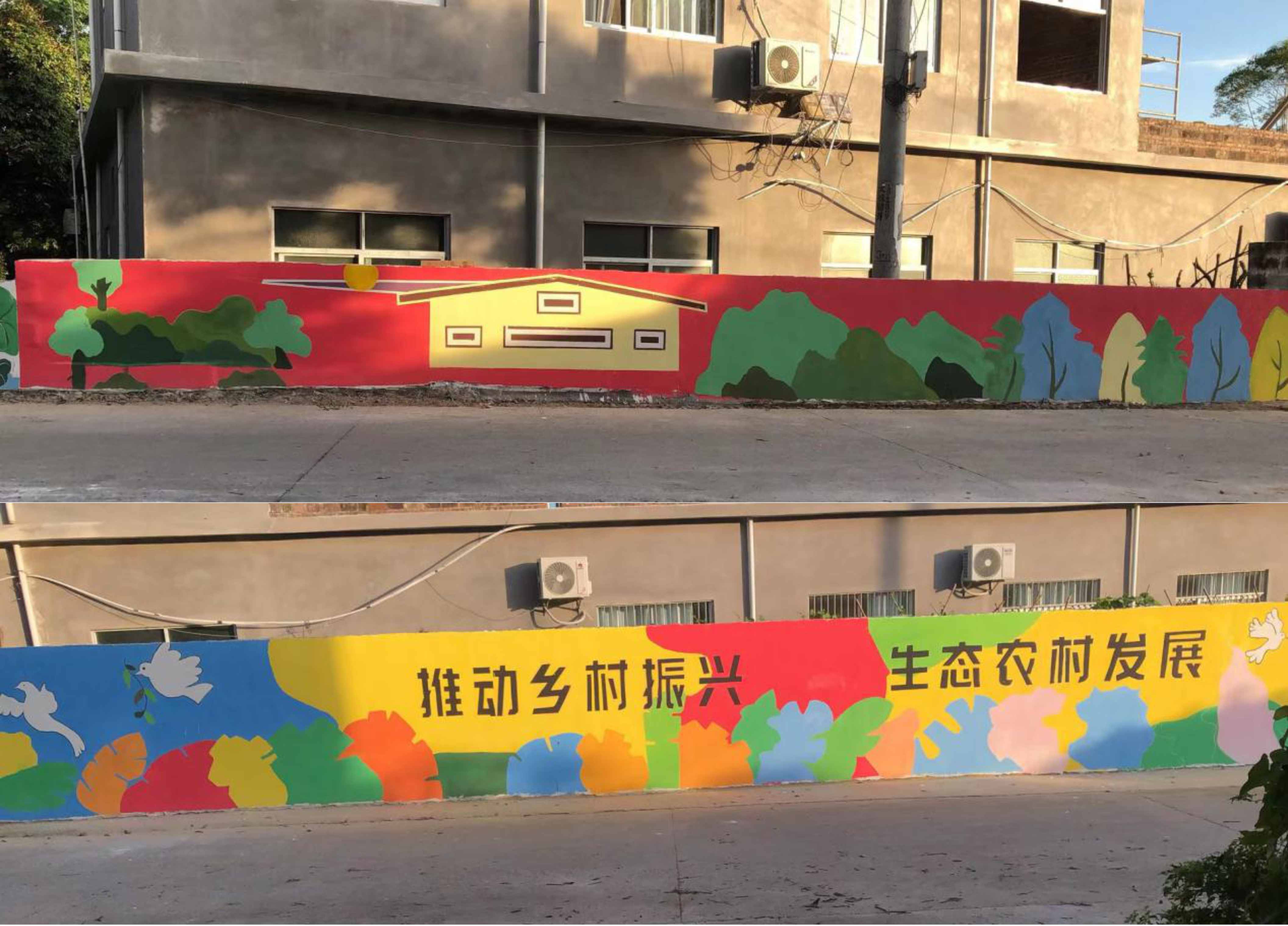 為進(jìn)一步學(xué)習(xí)貫徹黨的二十大精神,積極響應(yīng)黨的號召,助力鄉(xiāng)村振興建設(shè),打造“美麗庭院”,為鄉(xiāng)村振興添色彩,提升鄉(xiāng)村內(nèi)涵,7月21日至23日,藝術(shù)設(shè)計(jì)學(xué)院黨支部、百色工程職業(yè)技術(shù)學(xué)校黨支部范玉翠、郁長松、趙志輝、蘇媚、陸閑等5名教師黨員赴玉林市陸川縣橫山鎮(zhèn)旺坡村開展公益“彩色文化墻繪,繪就鄉(xiāng)村振興”主題黨日活動(dòng),用藝術(shù)服務(wù)鄉(xiāng)村振興、用畫筆描繪美麗鄉(xiāng)村。黨員教師共學(xué)黨史,共繪創(chuàng)意墻繪,助力鄉(xiāng)村振興建設(shè),展示“黨建引領(lǐng)、產(chǎn)業(yè)興旺、生態(tài)宜居、生活富裕、鄉(xiāng)風(fēng)文明、治理有效”的鄉(xiāng)村振興新風(fēng)貌。