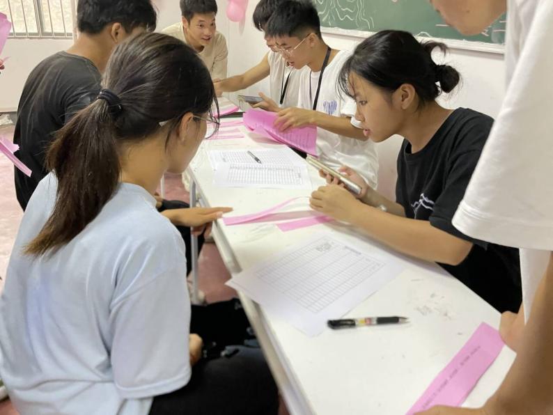 經(jīng)過頭腦風(fēng)暴的洗禮,同學(xué)們紛紛拿著已經(jīng)解答完畢謎語紙條,有序地排隊(duì)到工作人員處揭開謎語的神秘面紗。