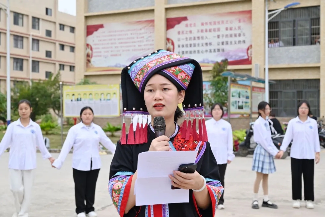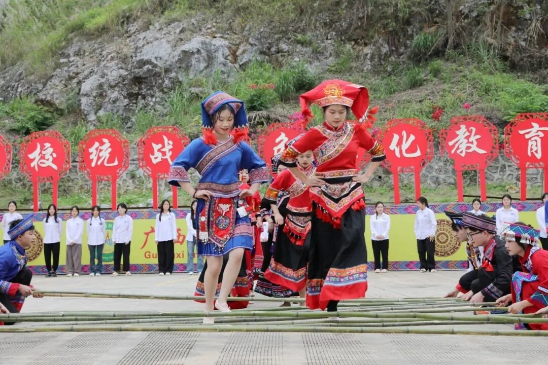 同學們意氣風發(fā)、朝氣蓬勃,踏著節(jié)拍踩著輕盈的舞步,盡情體驗“廣西三月三”特有的民族風情,形成校園一道靚麗的風景線。