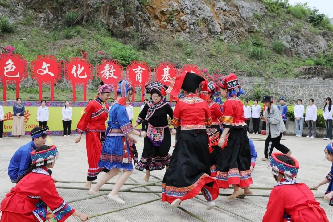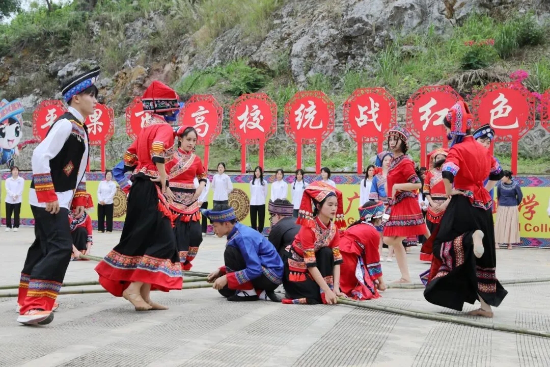 竿竿舞民族旋律,步步現(xiàn)團結情懷。4月9日,同學們身著民族服裝,相聚在統(tǒng)戰(zhàn)紅色文化教育基地,歡快跳起了竹竿舞。紀委書記、副校長彭高彬等校領導到現(xiàn)場與師生一起共慶三月三。