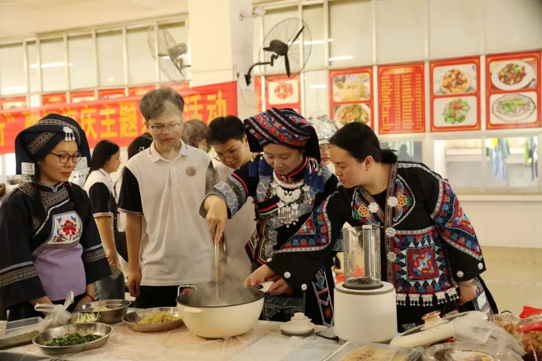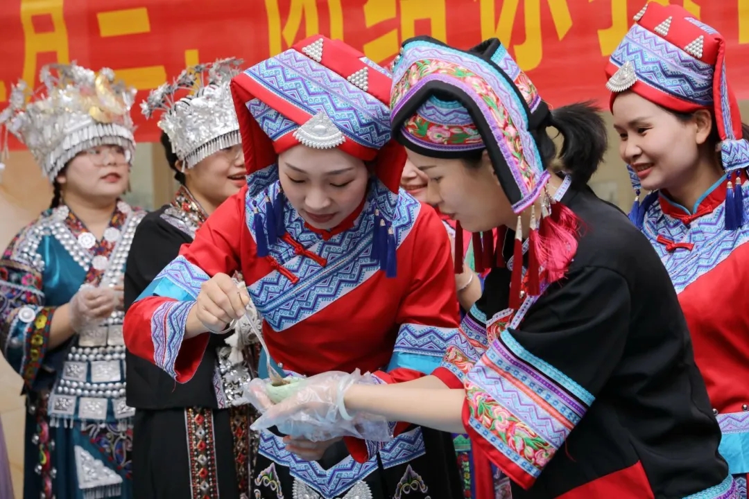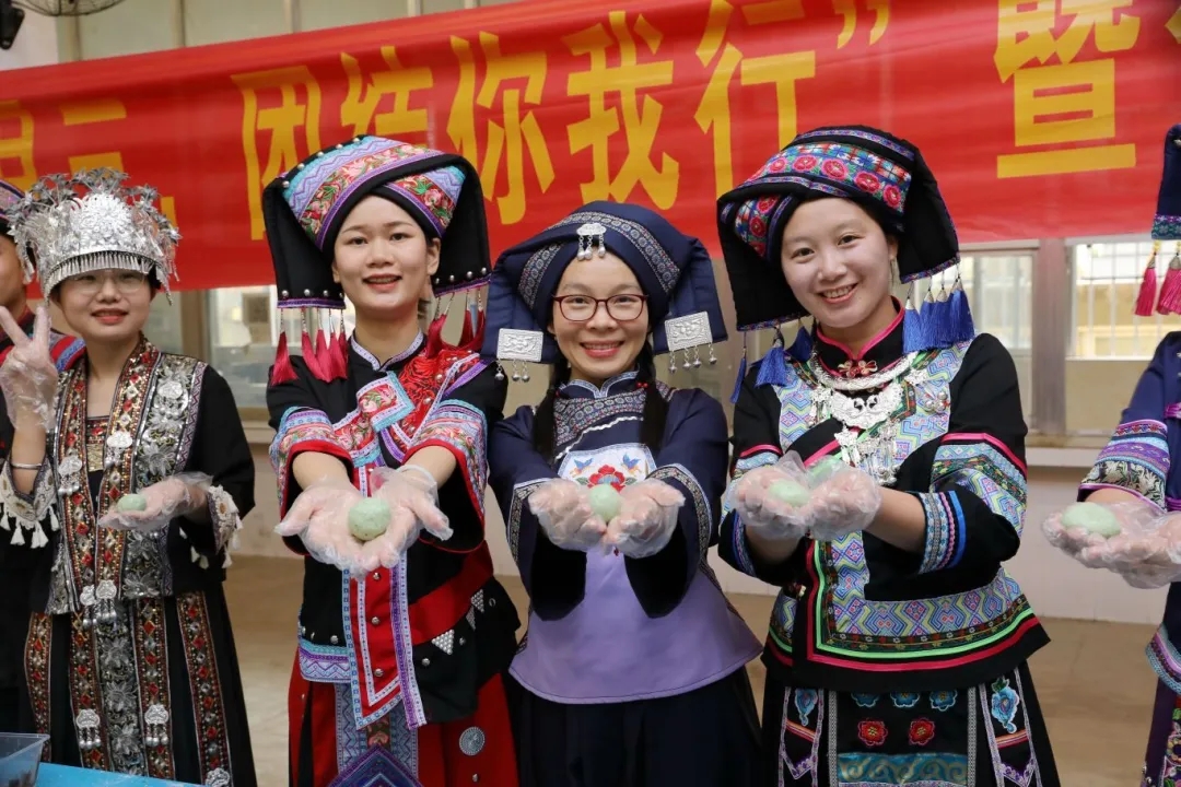 本次“廣西三月三”系列活動以“潮起三月三,團結你我行”為主題,開展有“扎染制作”“廣西特色美食(糯米飯、艾葉糍粑、油茶)制作”“‘廣西三月三’微黨課”“蓮鼓越歌行舞蹈”“跳竹竿舞”“山歌對唱”等6項獨具魅力的活動。