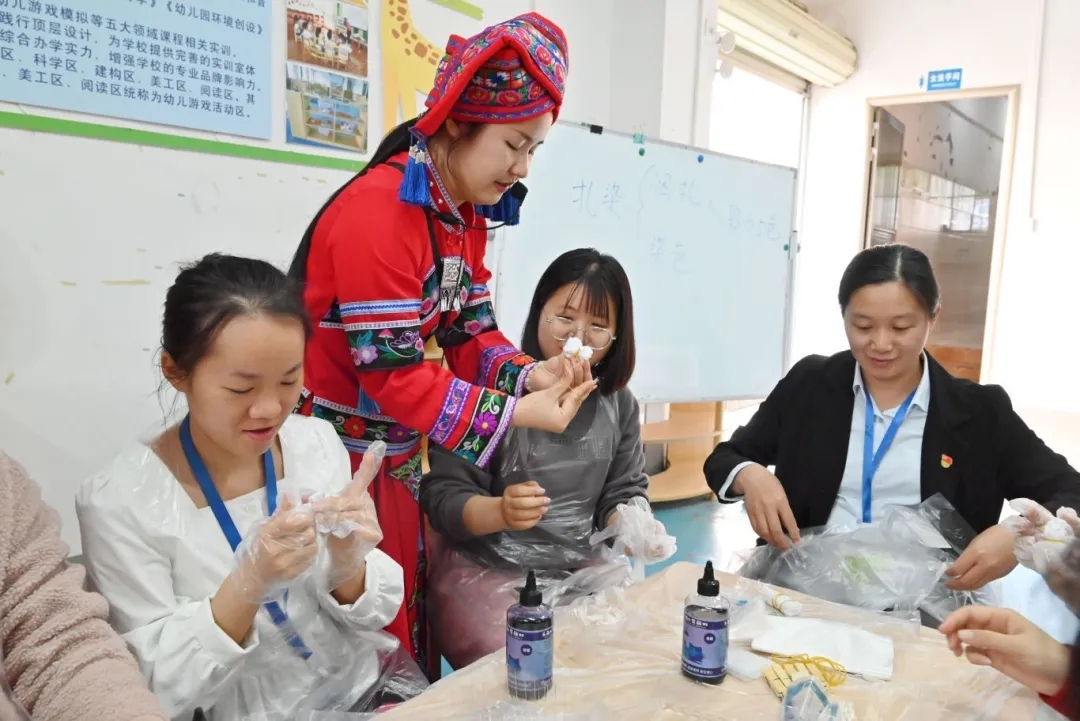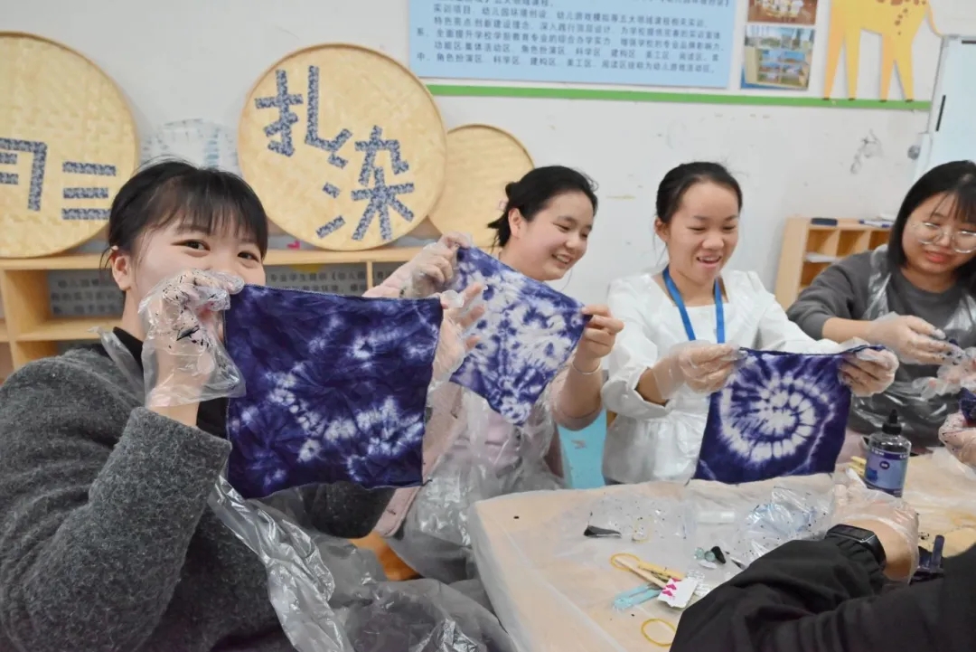 扎染是我國的非物質文化遺產,是中國民間傳統(tǒng)而獨特的染色工藝。4月8日下午,學校在教育學院實訓樓一樓開展扎染制作體驗活動。