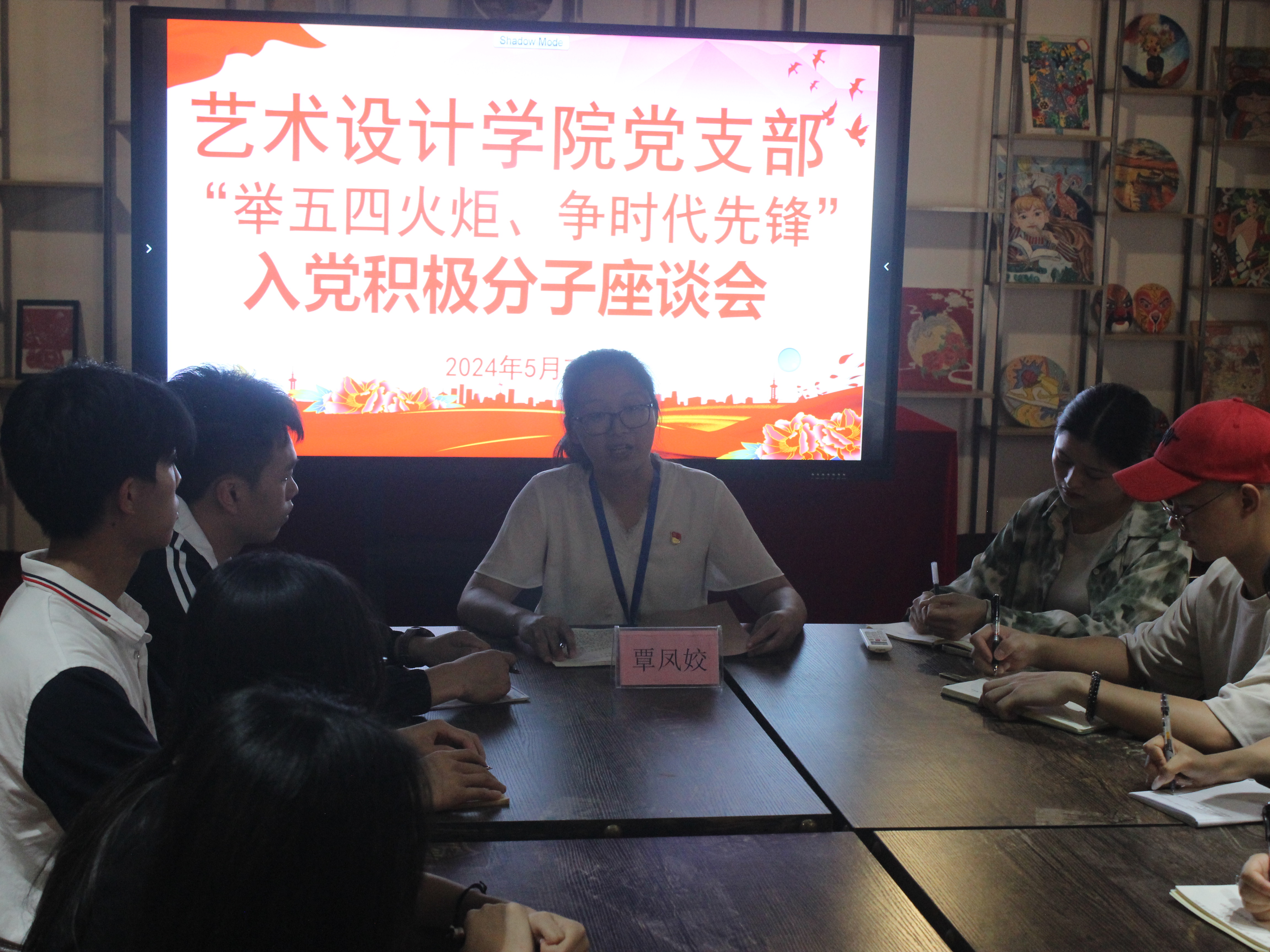 進一步激發(fā)入黨積極分子的政治熱情,增強他們的黨性修養(yǎng),為學院黨建工作的深入開展奠定堅實基礎,2024年5月6日,藝術設計學院黨支部在學院一樓黨員書屋召開2024年入黨積極分子座談會。學院黨支部書記覃鳳姣、副書記趙志輝、組織委員陸閑、紀檢委員蘇媚等支部委員出席了本次座談會,與入黨積極分子進行了交流。