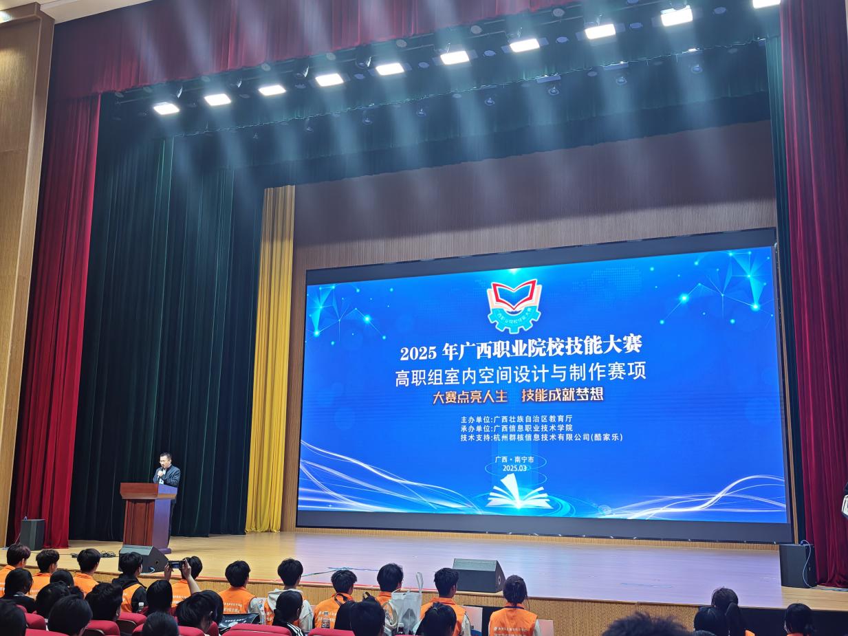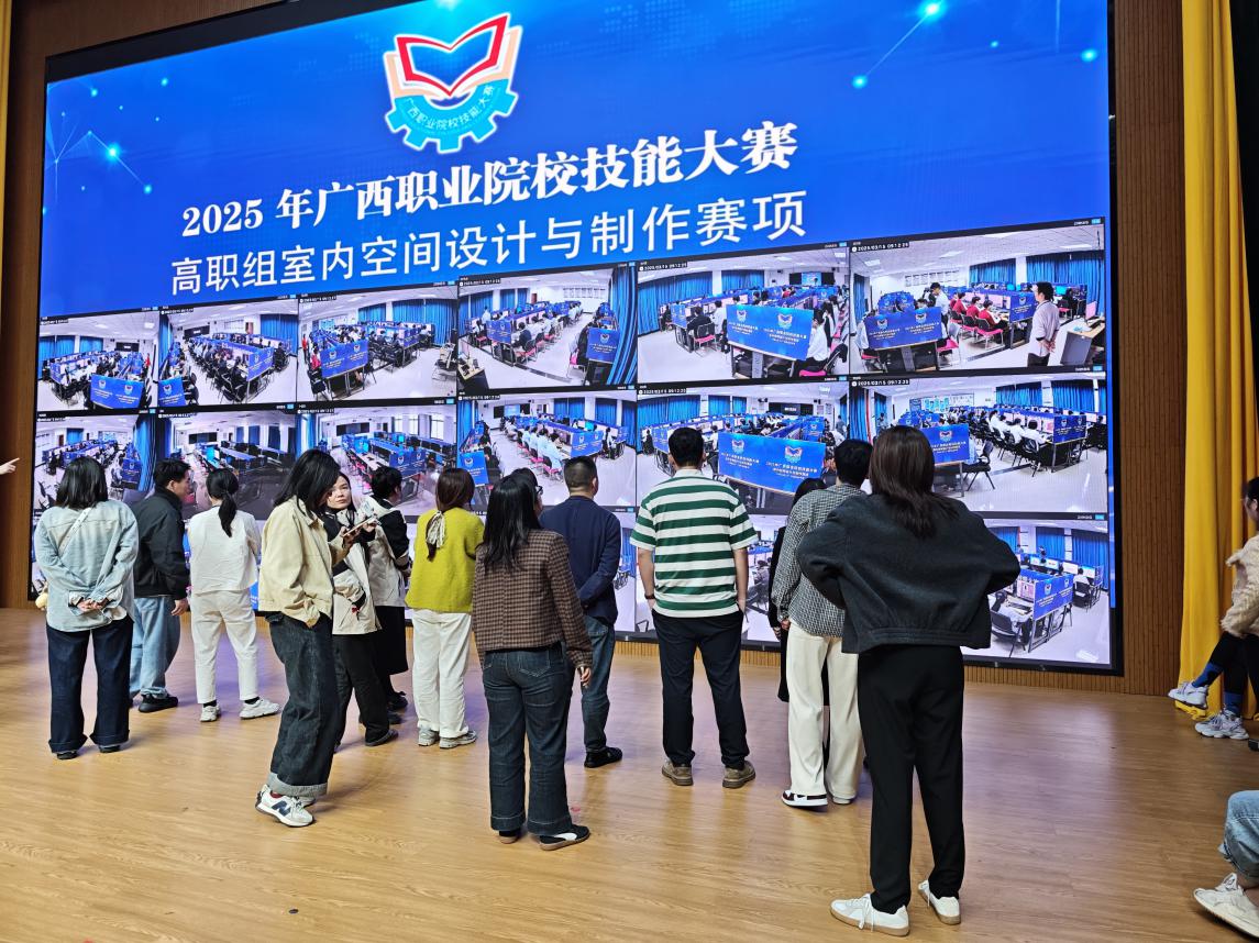 圖為2025年廣西職業(yè)院校技能大賽高職組室內(nèi)空間設(shè)計與制作賽項開幕式現(xiàn)場