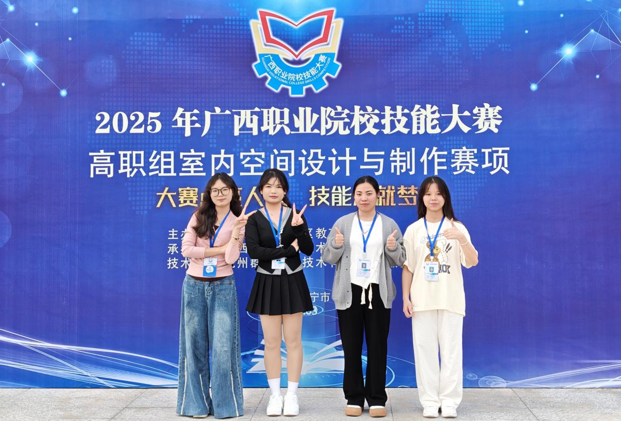 2025年3月14日—16日廣西職業(yè)院校(高職組)室內(nèi)空間設(shè)計與制作技能比賽在廣西信息職業(yè)技術(shù)學(xué)院舉辦,共有26所職業(yè)院校50支代表隊參賽,藝術(shù)設(shè)計學(xué)院王杰老師和譚雪融老師帶領(lǐng)建筑室內(nèi)設(shè)計專業(yè)楊媛、吳思思、阮盈盈、陶東陽等4名同學(xué)參加了此次比賽。比賽分為兩個模塊,其中技能操作為55分鐘,展示匯報為5分鐘。