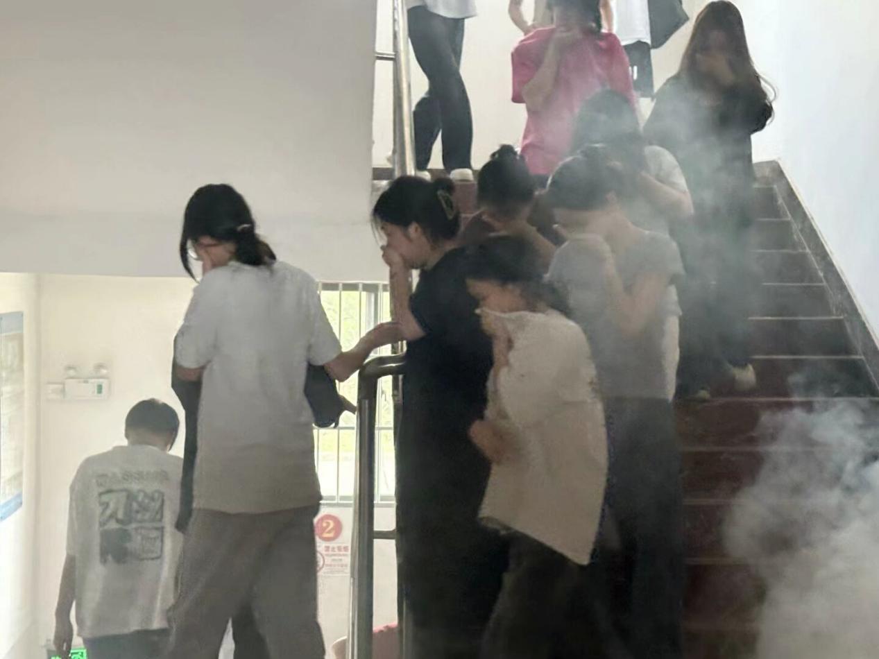 消防安全演練過程中,在藝術設計學院樓內(nèi)模擬火災場景,濃煙迅速彌漫,警報聲隨即響起。參與演練的師生迅速反應,按照應急預案,任課老師組織同學們用手捂住口鼻,采取低姿勢快速前進,在安全出口處教師的引導下沿指定疏散路線有序撤離。在短短一分鐘內(nèi),全體師生安全撤離至學院門口的安全地帶,展現(xiàn)了高效的應急反應能力。