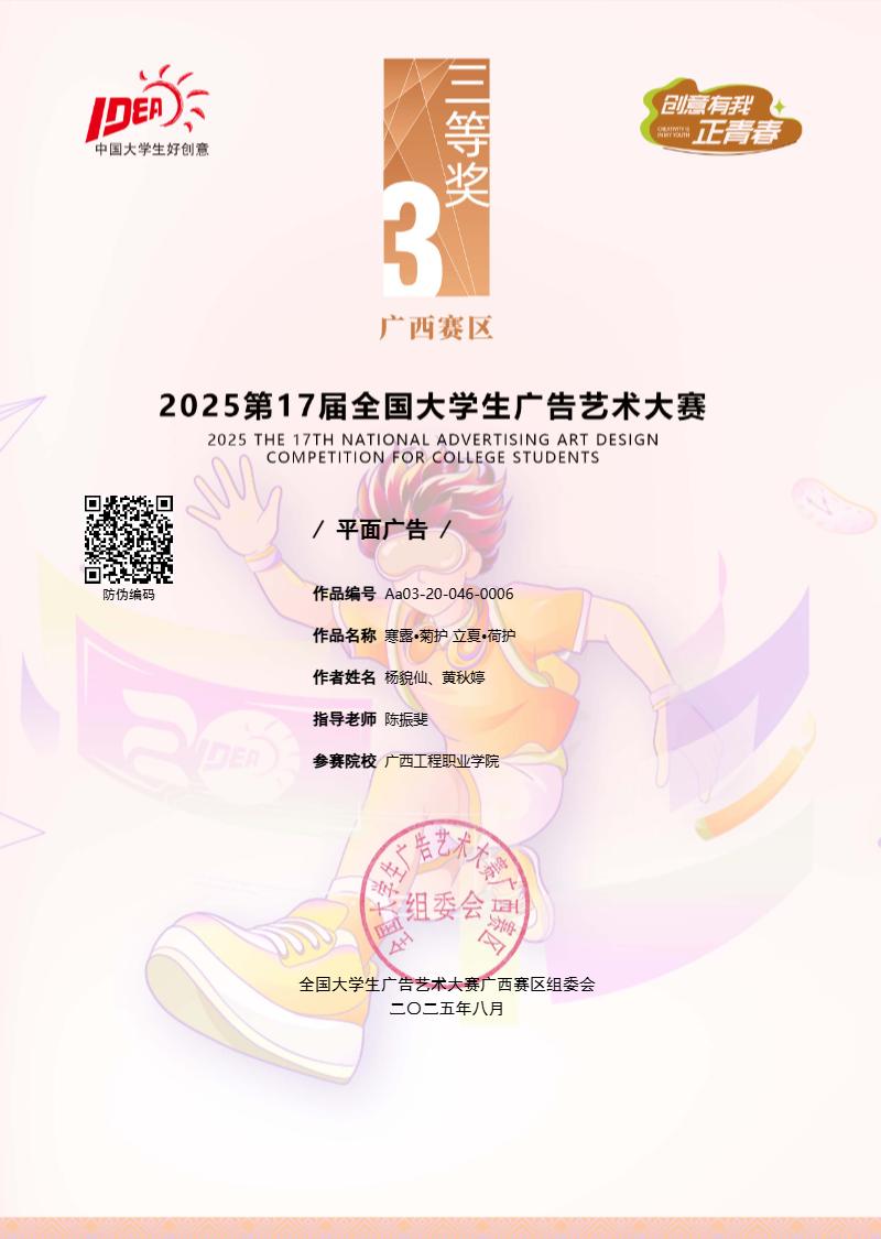 喜報(bào):廣西工程職業(yè)學(xué)院藝術(shù)設(shè)計(jì)學(xué)院學(xué)生在第十七屆全國大學(xué)生廣告藝術(shù)大賽中喜獲佳績(jī)