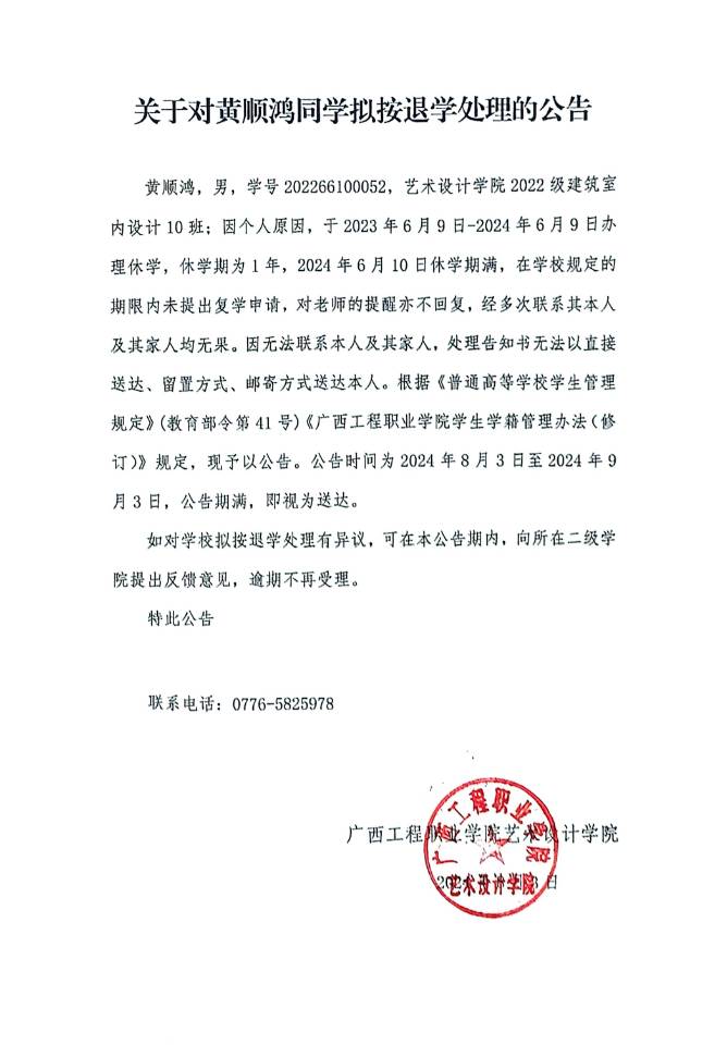 上一篇:關(guān)于對楊家輝同學(xué)擬按退學(xué)處理的公告
