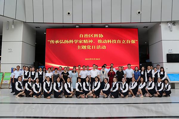 9月30日,在“十一”國(guó)慶節(jié)即將到來(lái)之際,結(jié)合“赤子丹心——與黨同齡的科學(xué)家”展覽啟動(dòng)開(kāi)幕,廣西科協(xié)組織開(kāi)展“傳承弘揚(yáng)科學(xué)家精神、推動(dòng)科技自立自強(qiáng)”主題黨日活動(dòng)。廣西科協(xié)黨組書(shū)記、副主席納翔,黨組成員、副主席梁春花、何求以及廣西科協(xié)機(jī)關(guān)和直屬事業(yè)單位的黨員干部參加了主題黨日活動(dòng)。