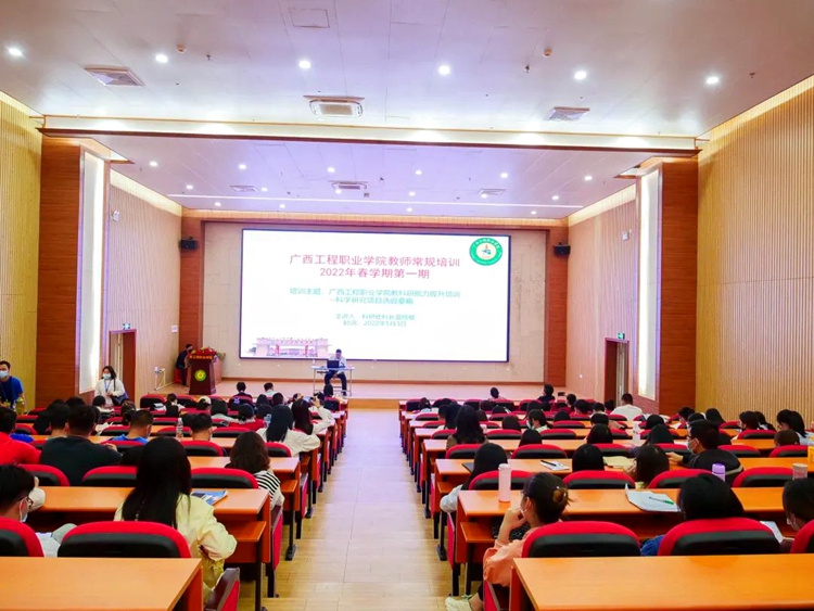 2022年5月3日,第一期專題培訓(xùn)在圖文信息大樓報(bào)告廳舉行,學(xué)校科研處藍(lán)桂敏科長(zhǎng)作教科研能力提升專題培訓(xùn)。