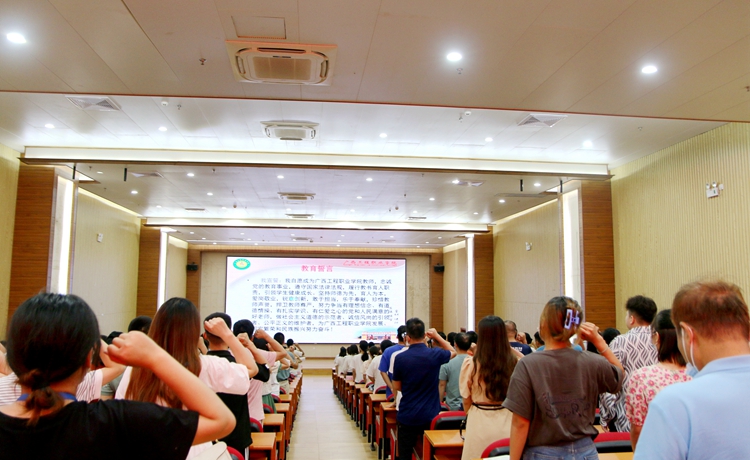 彭高彬書記最后強調(diào)全體教職工要提高紅線意識,增強教師職業(yè)使命感,勇挑時代重?fù)?dān),嚴(yán)格執(zhí)行和落實師德規(guī)范,做一個讓黨和國家放心,讓人民信任的新時代教師。