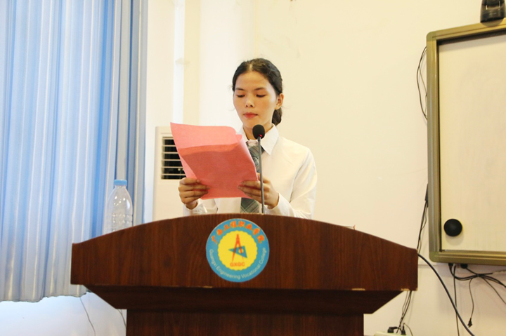由教育學院副院長梁善雅宣讀第一屆干部名單