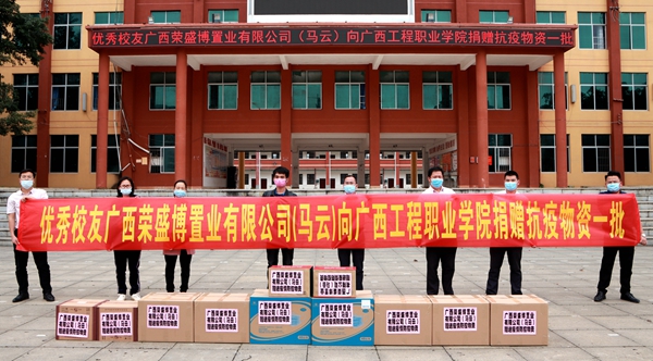 2020年4月13日,我校經(jīng)濟(jì)管理學(xué)院2009級(jí)市場(chǎng)營(yíng)銷專業(yè)校友、廣西榮盛博置業(yè)有限公司董事長(zhǎng)馬云,2008級(jí)國(guó)際經(jīng)濟(jì)與貿(mào)易專業(yè)校友、廣西百色藝品梧桐文化有限公司總經(jīng)理黃雅潔及工程與藝術(shù)設(shè)計(jì)學(xué)院2007級(jí)電腦藝術(shù)設(shè)計(jì)專業(yè)校友、廣西名藝品味裝飾公司總經(jīng)理張遠(yuǎn)水等多位校友分別向?qū)W校捐贈(zèng)疫情防控物資,助力學(xué)校新冠肺炎防控疫情工作和開學(xué)準(zhǔn)備工作。
