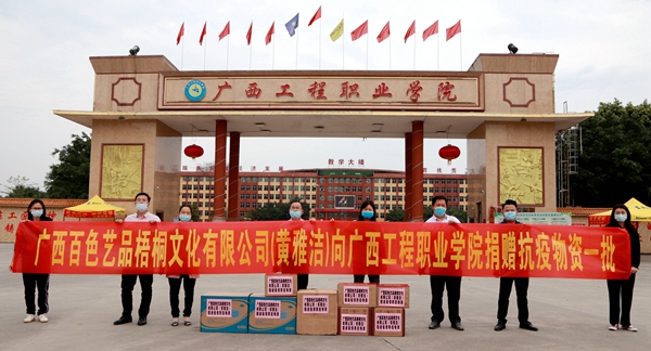 2008級(jí)國(guó)際經(jīng)濟(jì)與貿(mào)易專業(yè)校友、廣西百色藝品梧桐文化有限公司總經(jīng)理黃雅潔向母校捐贈(zèng)防控物資