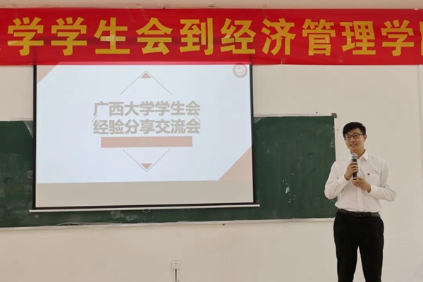 11月26日,廣西大學學生會與我校經(jīng)濟管理學院學生會交流學習。交流會上,大家通過ppt展示的形式,結(jié)合各自學生會的具體情況,就工作中所遇到的問題及處理方法分享了工作經(jīng)驗。雙方都希望通過經(jīng)驗交流會學有所獲,進一步改進學生會工作方法,提高工作效率,為學校的學風建設(shè)添磚加瓦。