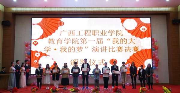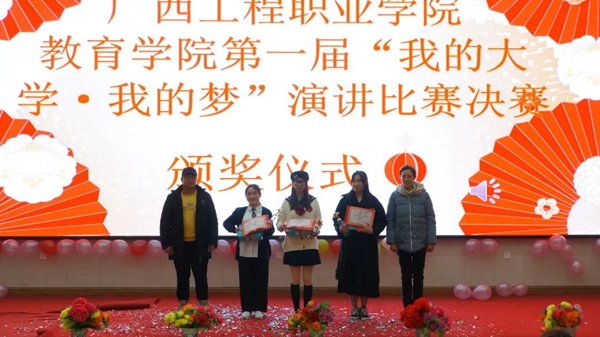 2020年12月23日晚,我校教育學(xué)院第一屆“我的大學(xué),我的夢(mèng)”大學(xué)生主題演講比賽決賽在圖文信息大樓報(bào)告廳舉行。來自各二級(jí)學(xué)院15名同學(xué)參加了本次角逐。教育學(xué)院副院長(zhǎng)梁善雅出席比賽現(xiàn)場(chǎng)并致辭,黃能、凌玲、盧燕梅、梁玉瑩等老師擔(dān)任比賽評(píng)委,來自各學(xué)院的師生代表、各學(xué)生社團(tuán)代表等前來觀看比賽。