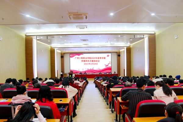 為進一步加強我校師德師風建設,提高全校教職工的職業(yè)道德素養(yǎng),促進教職工以優(yōu)良的作風和昂揚的精神面貌投入到新學期的各項工作中,2021年2月28日,學校在圖文信息大樓召開新學期師德師風專題教育培訓會,學校黨政領導及全體教職工參加培訓會。會議由副校長羅艷妮主持。
