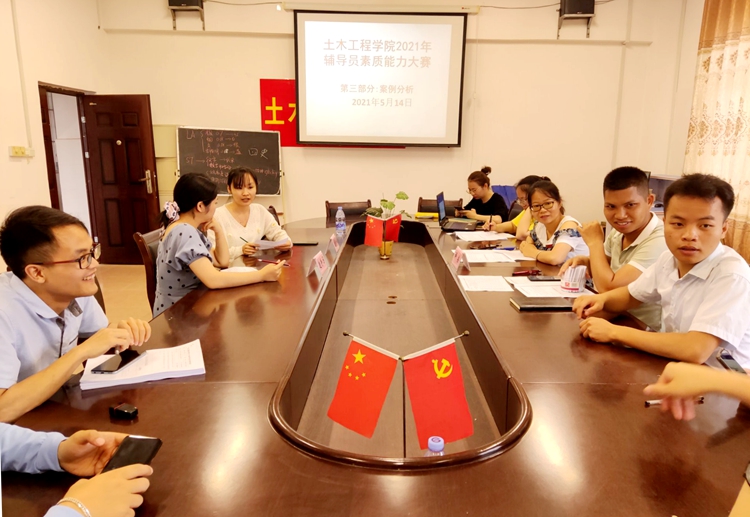 為深入學(xué)習(xí)貫徹習(xí)近平新時(shí)代中國(guó)特色社會(huì)主義思想和黨的十九大、十九屆二中、三中、四中、五中全會(huì)精神,貫徹落實(shí)全國(guó)高校思想政治工作會(huì)議,全國(guó)、全區(qū)教育大會(huì)和習(xí)近平總書記關(guān)于高校思想政治工作的系列重要論述精神,落實(shí)《普通高等學(xué)校輔導(dǎo)員隊(duì)伍建設(shè)規(guī)定》要求,土木工程學(xué)院舉行2021年輔導(dǎo)員素質(zhì)能力大賽。比賽分別安排在5月7日下午、5月8日下午、5月14日下午共3個(gè)時(shí)間段舉行,大賽共分為基礎(chǔ)知識(shí)測(cè)試、談心談話、案例分析等三部分內(nèi)容。
