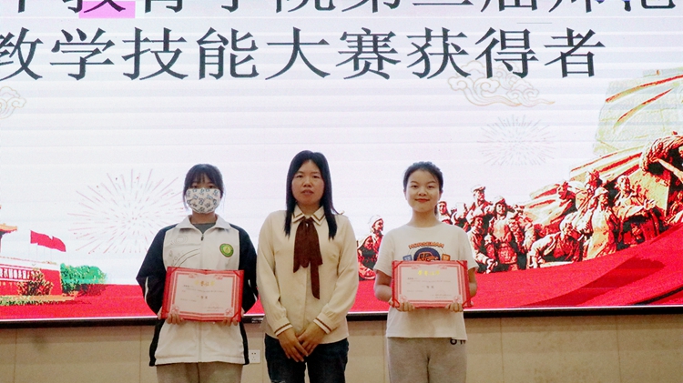 謝麗靜老師為榮獲學(xué)院第二屆師范生教學(xué)技能大賽優(yōu)勝獎的學(xué)生頒獎